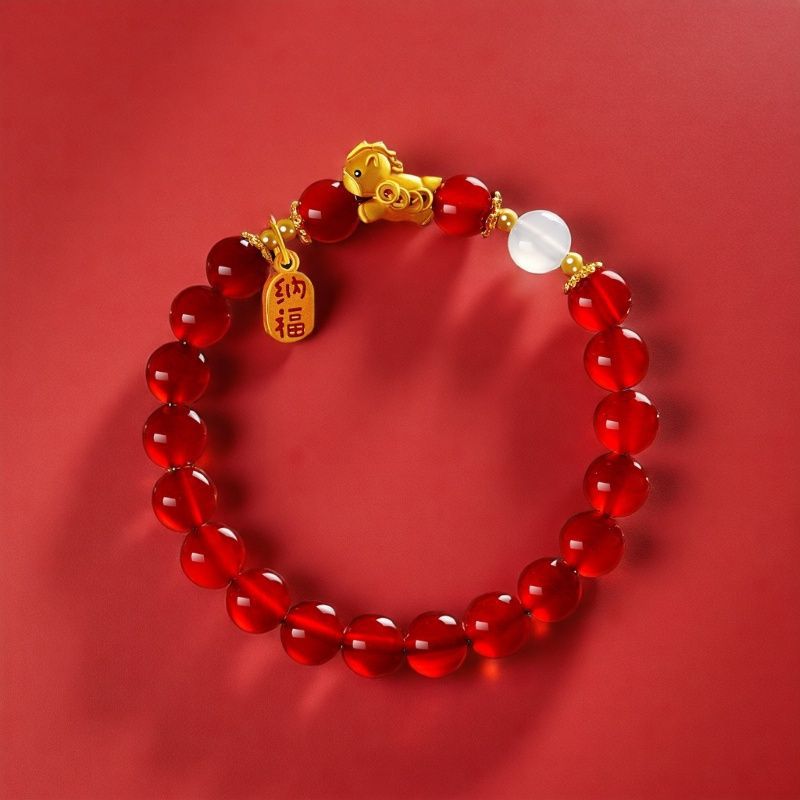 2026马年本命年天然红玛瑙手串女红色属马生肖新年新中式转运手链