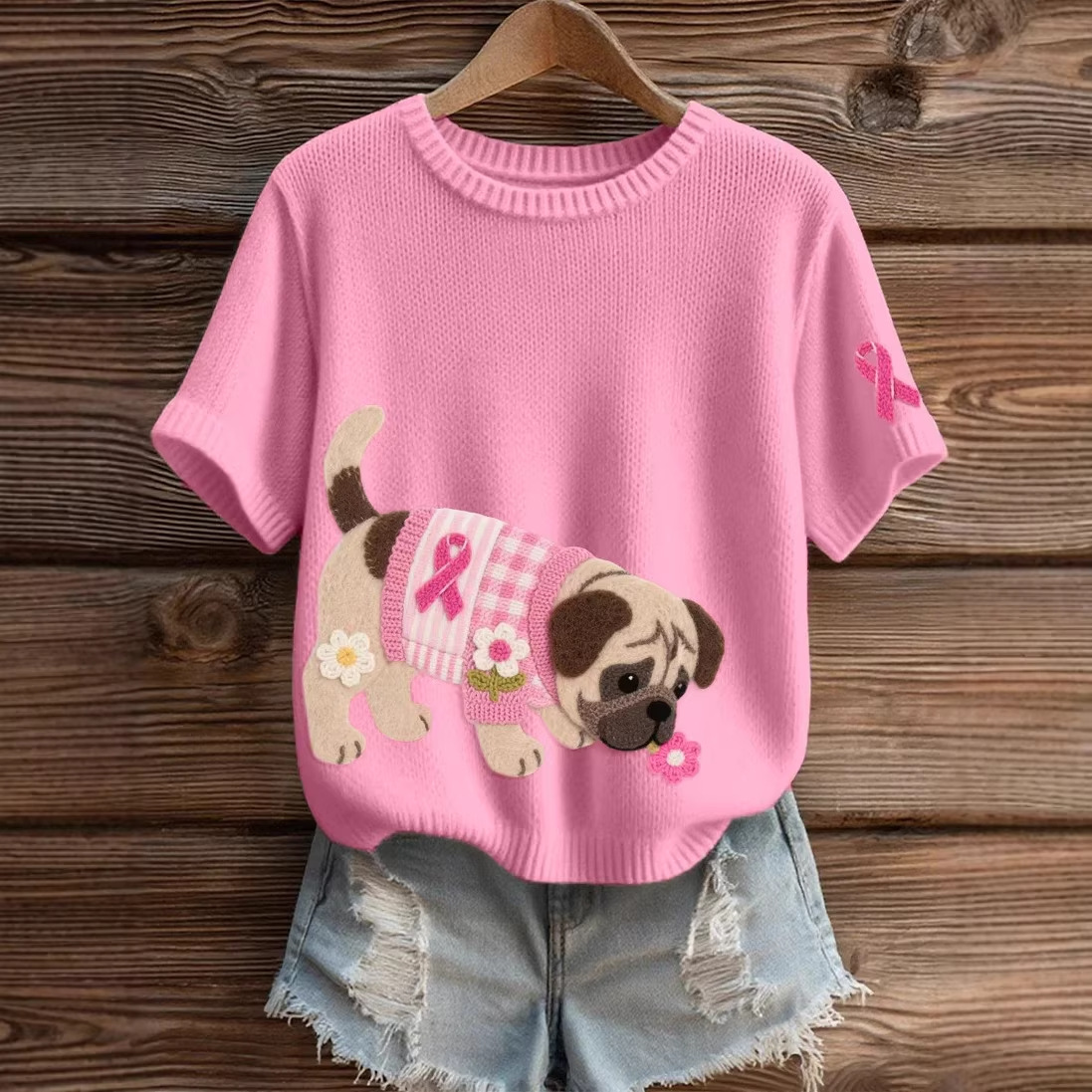 跨境爆款3D女士短袖T恤欧美宽松休闲女士上衣狗狗图案数码印花T恤