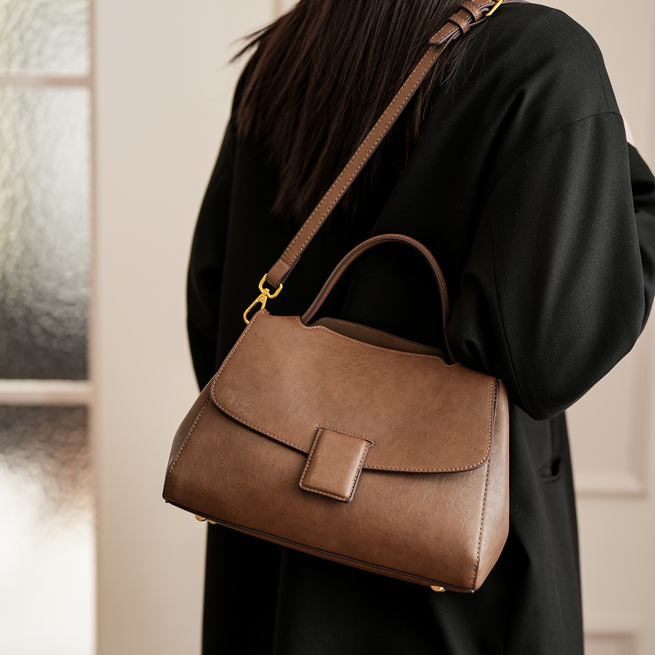 时尚百搭手提女包2025秋冬新款通勤大容量多隔层单肩斜挎包手提包