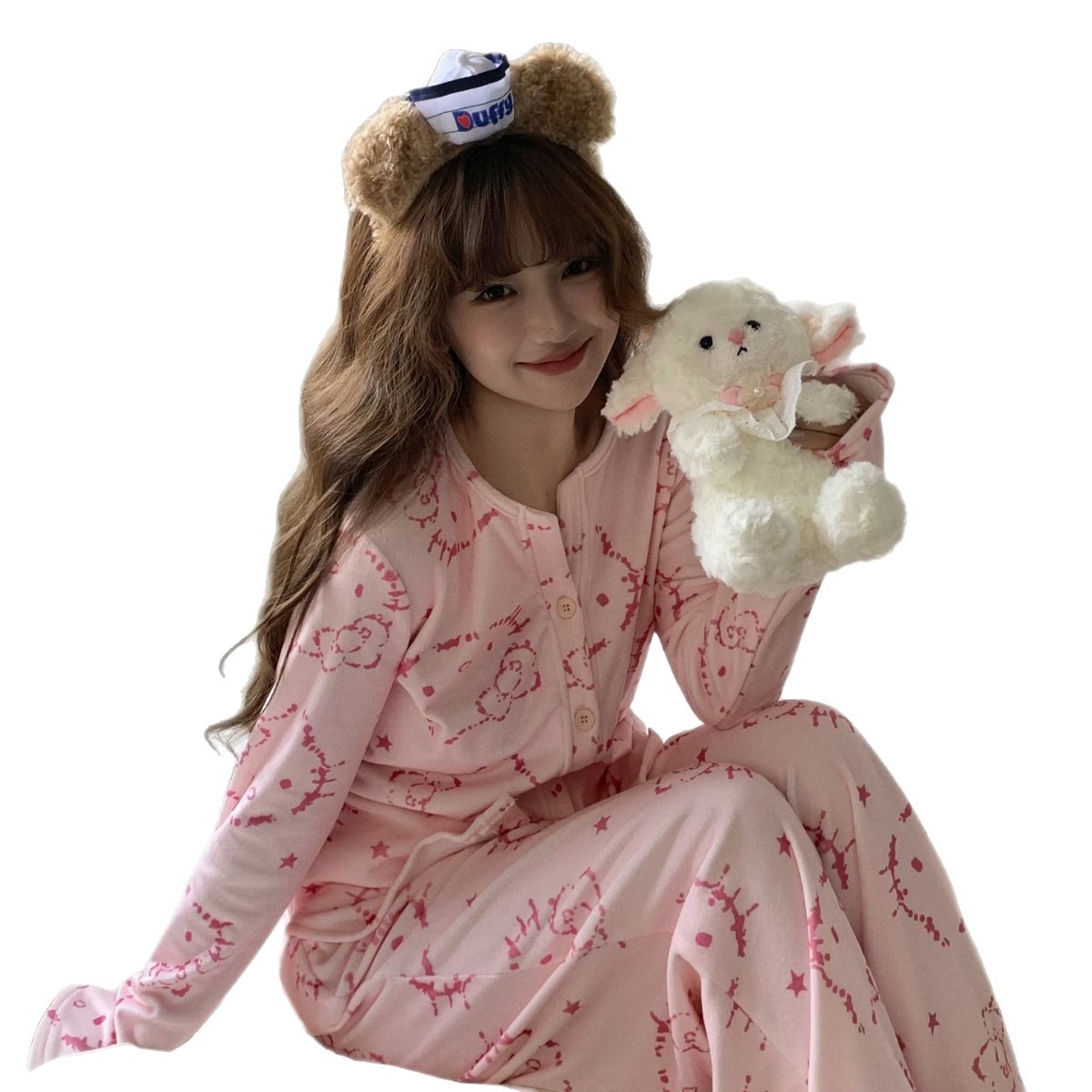 睡衣女款加厚海岛绒秋冬甜美卡通长袖长裤套装家居服批发少女风