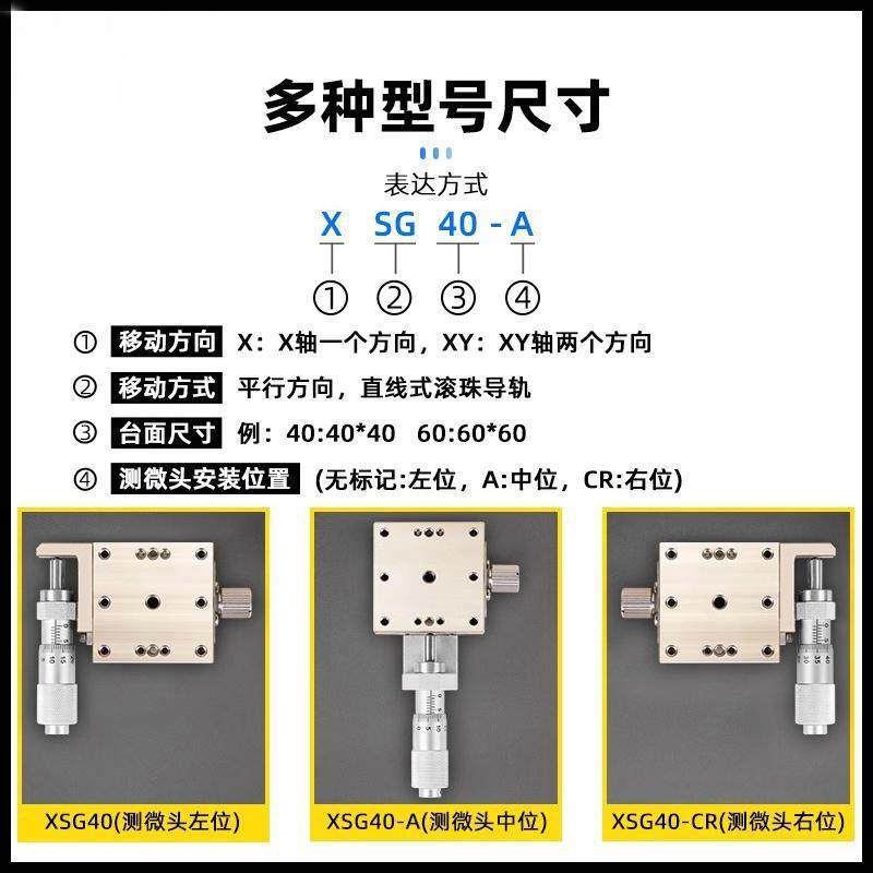 | 滑轨长度 | XSG40-A 测微头中位 | 滑轨长度 | XSG40-CR 测微头右位 |