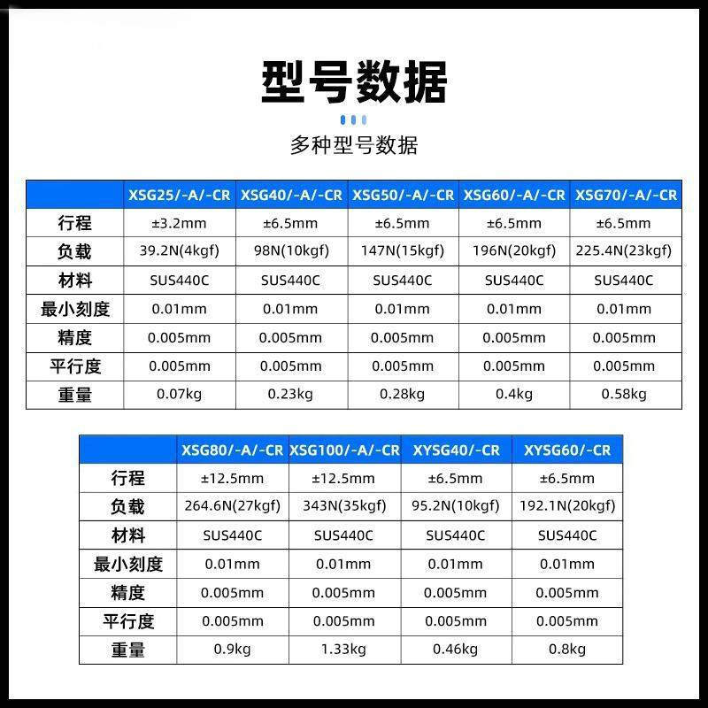 | 滑轨长度 | XSG60-A 测微头中位 | 滑轨长度 | XSG60-CR 测微头右位 |