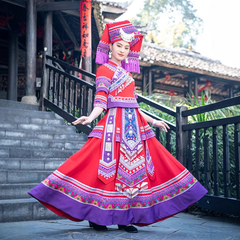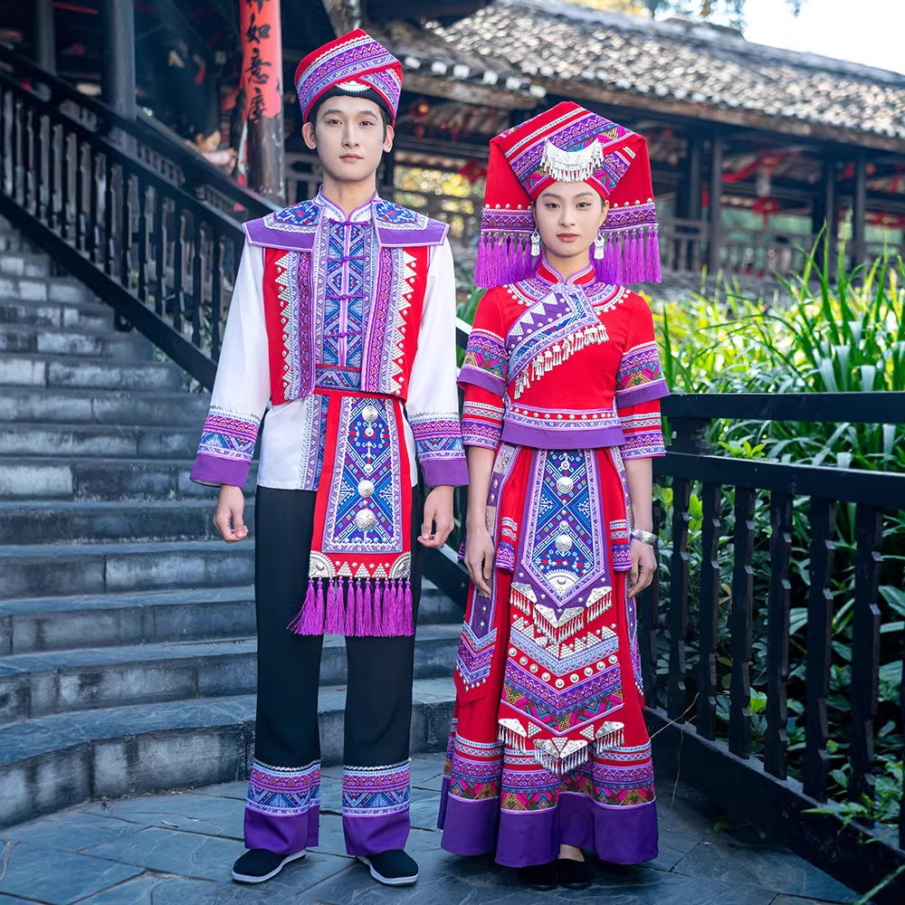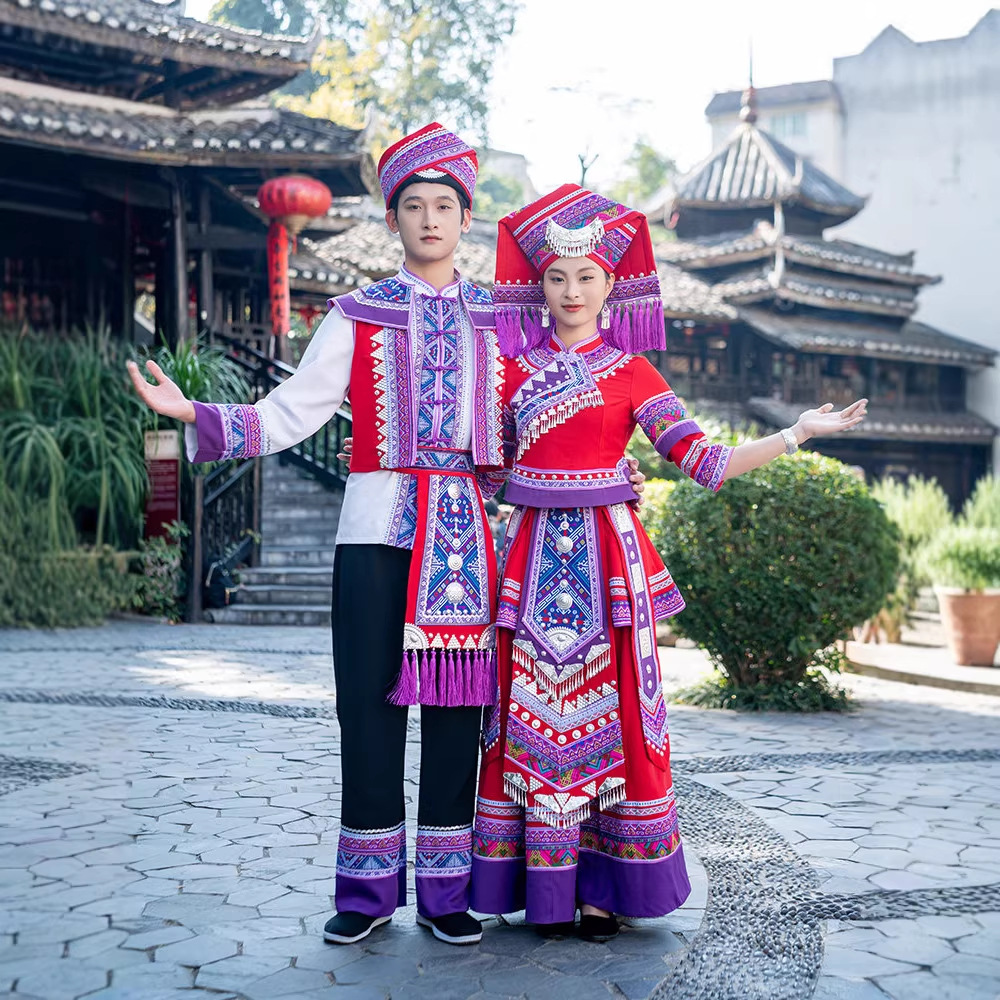 新款广西壮族三月三服装成人少数民族服饰刺绣苗族舞蹈套装演出服