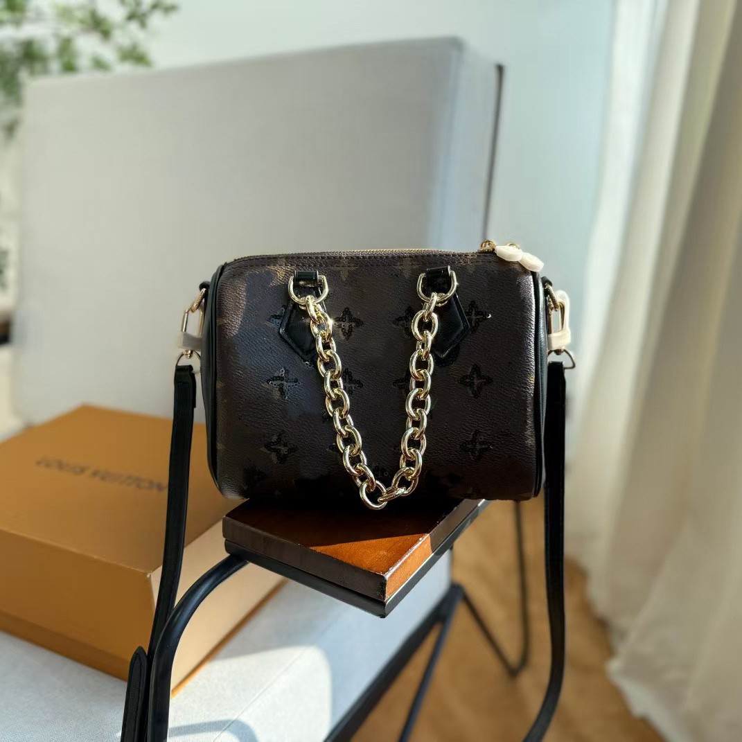 跨境供货链条斜挎包老花亮片刺绣枕头包2026新款女士单肩包滚筒包