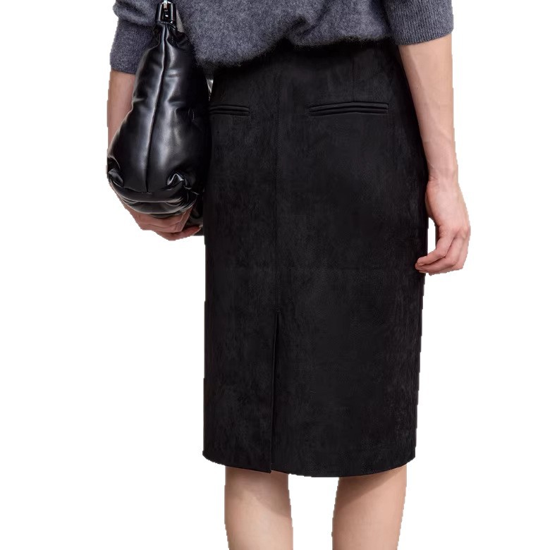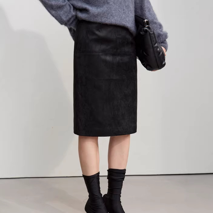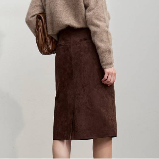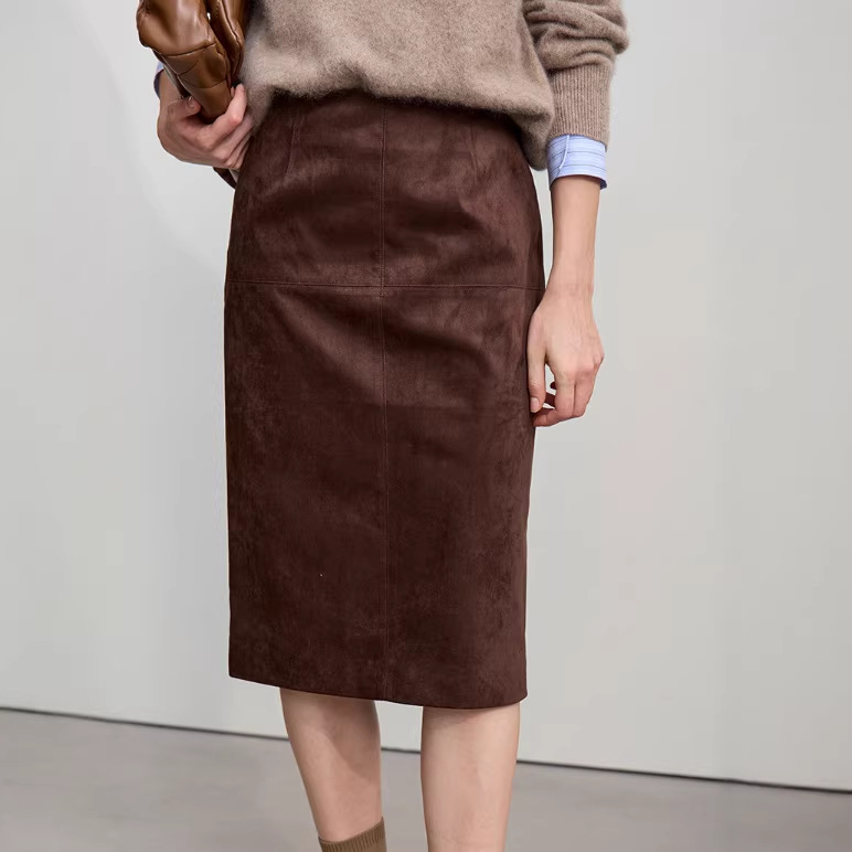 复古美拉德直筒裙25秋冬干练通勤风高腰显瘦麂皮绒A字中裙半身裙