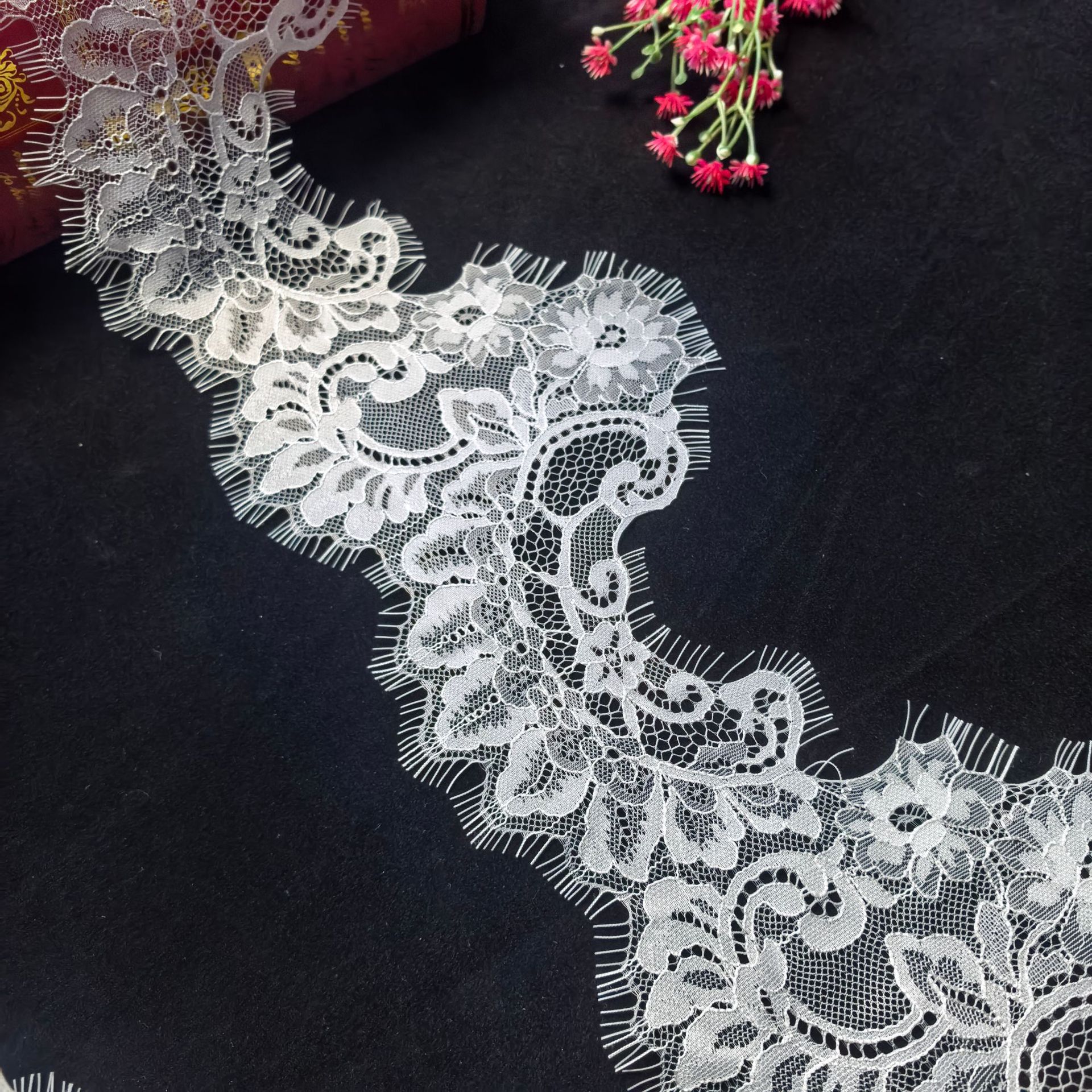 现货供应蕾丝睫毛花边 16公分锦纶无弹睫毛花边 童装女装服装辅料
