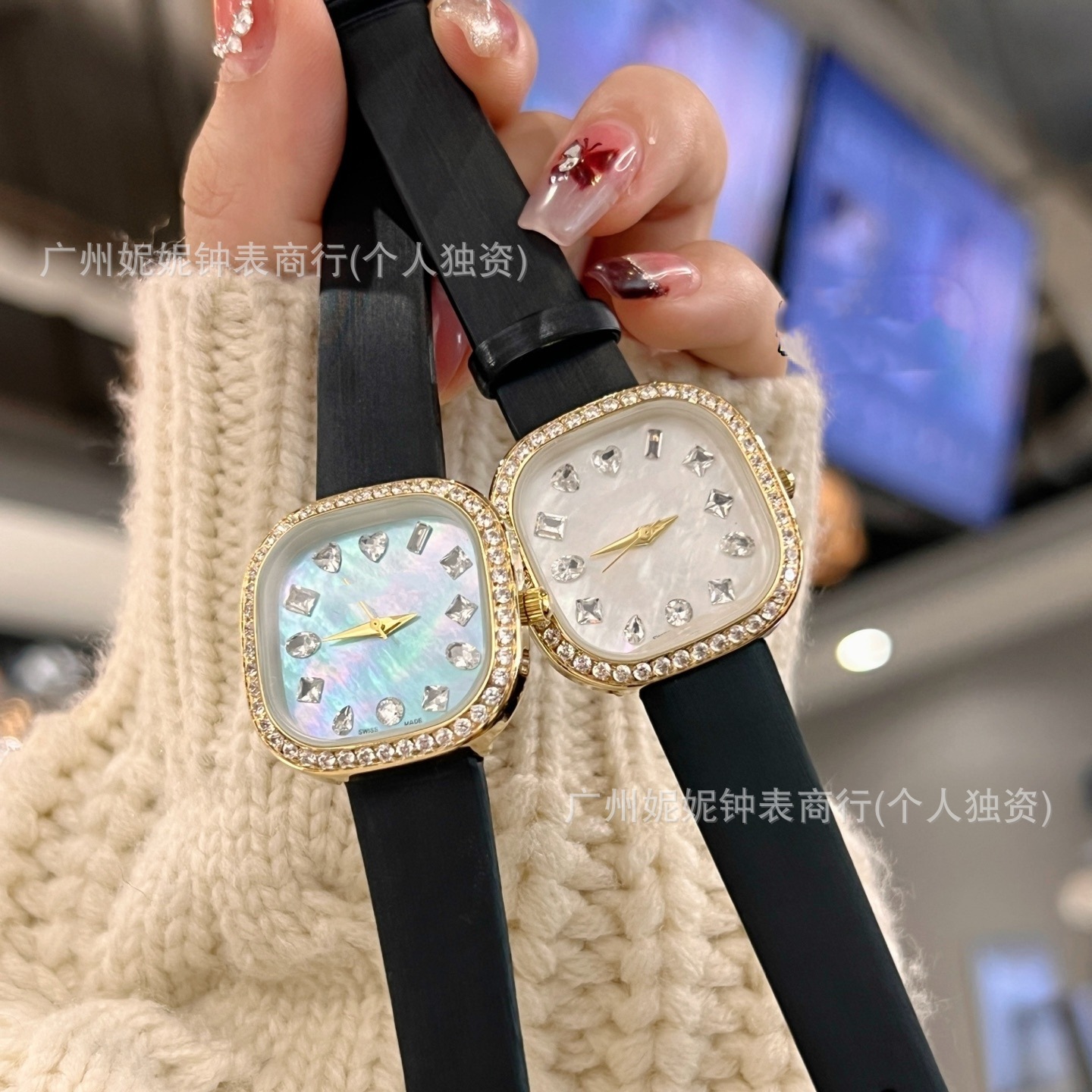 新款无痕代发爆款贝母不规则爱心钻刻度表盘绸缎表带优雅女士手表