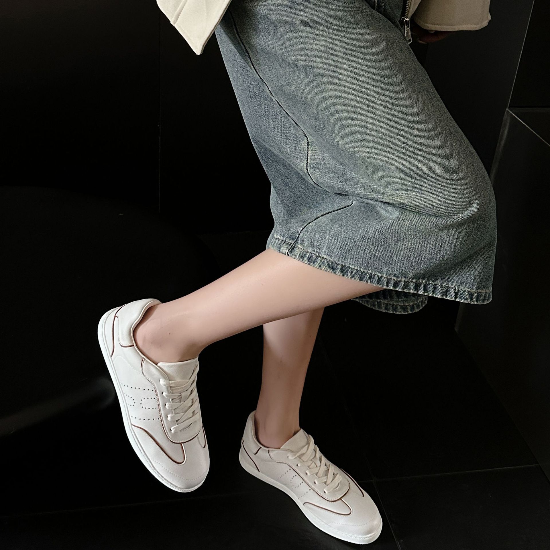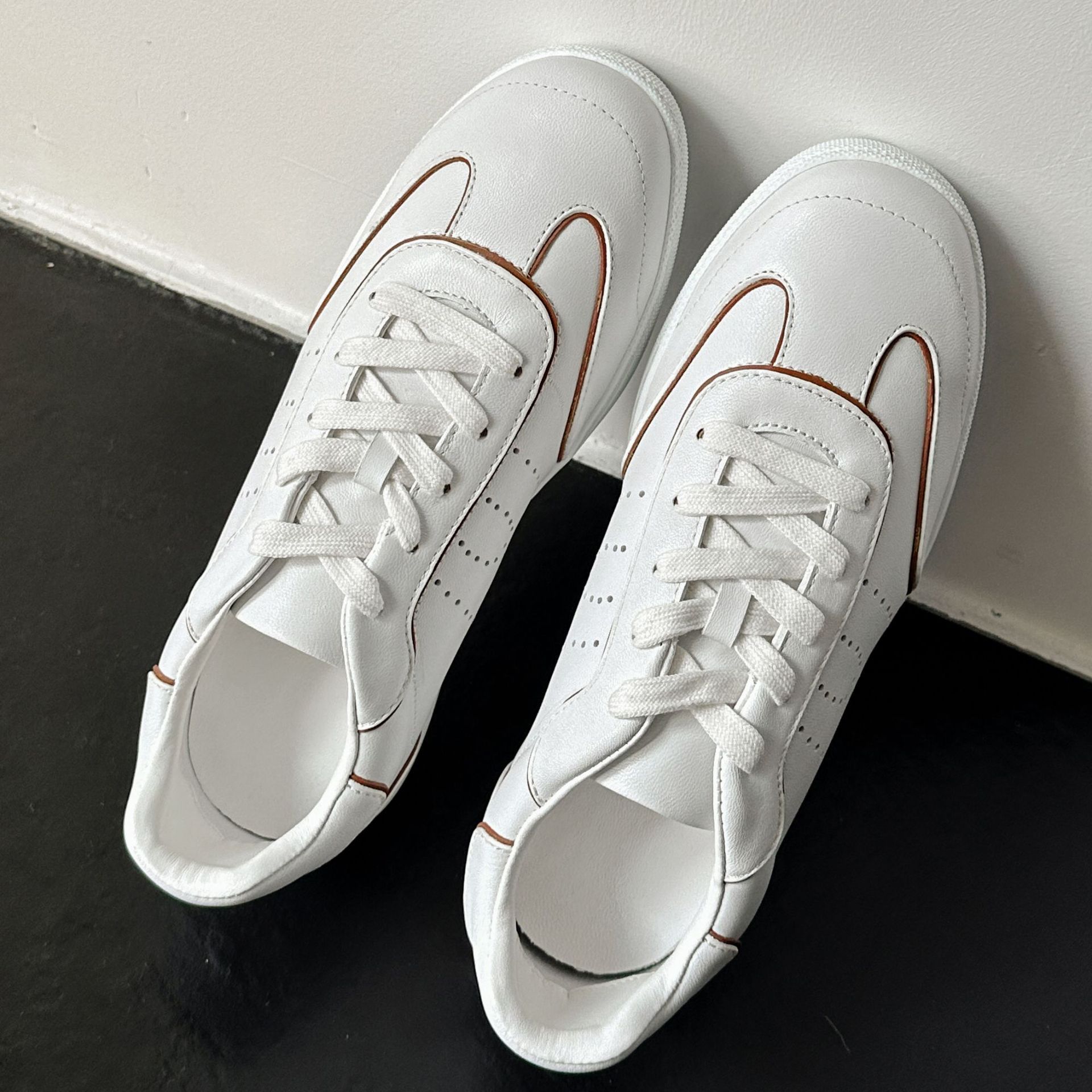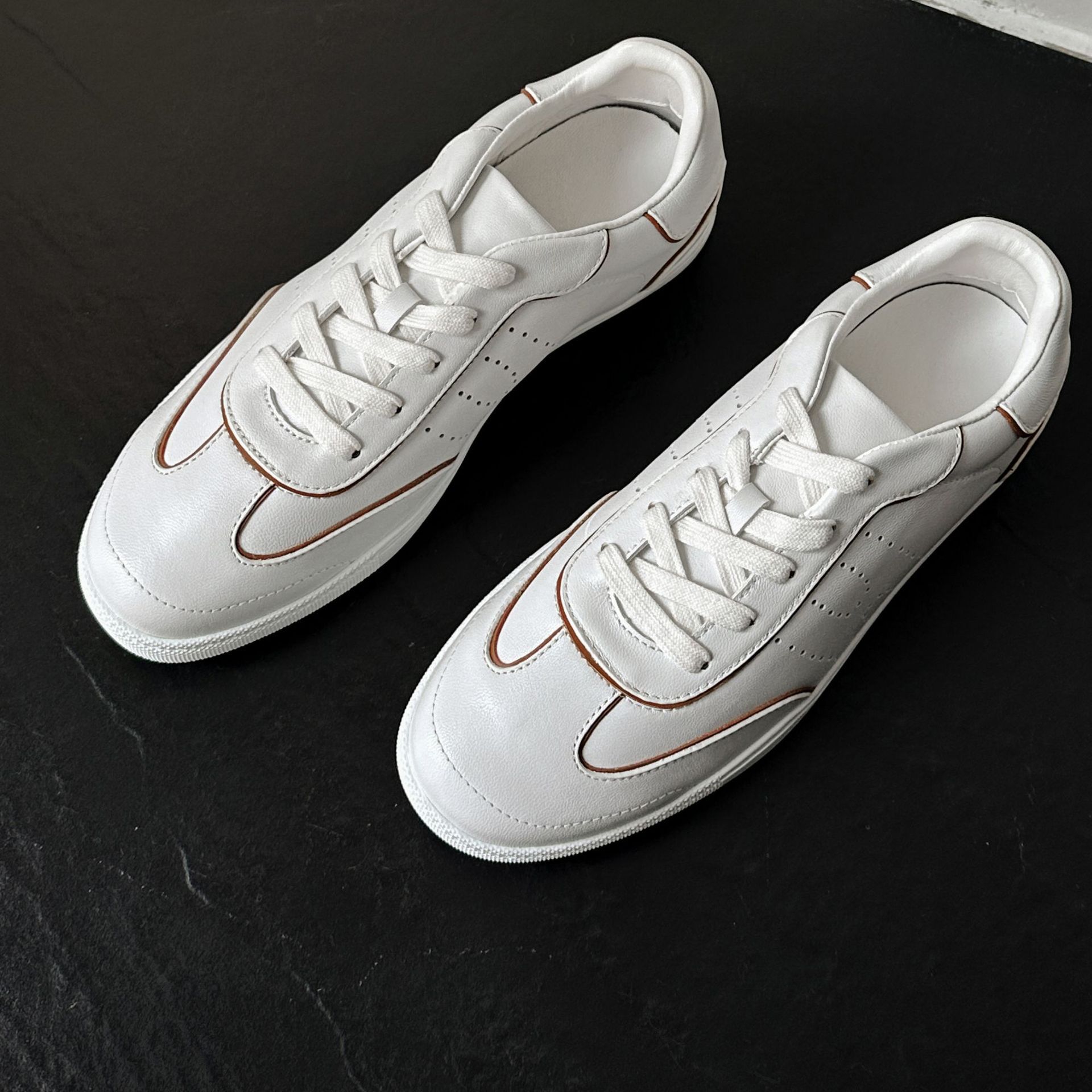 外贸原单系带通勤皮面休闲鞋女羊皮德训鞋运动小单鞋小白鞋低帮