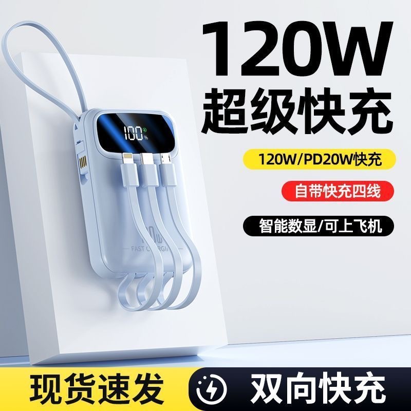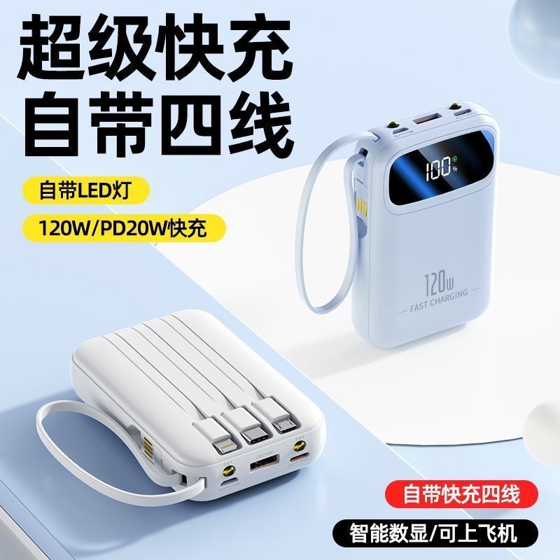 批发跨境充电宝官方正品超级快充自带线迷你大容量移动电源定制