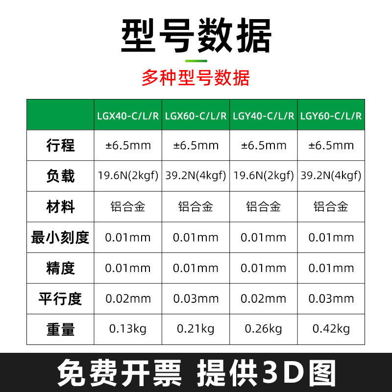 | 滑轨长度 | LGY60-C(XY轴) | 滑轨长度 | LGY60-R(XY轴) |