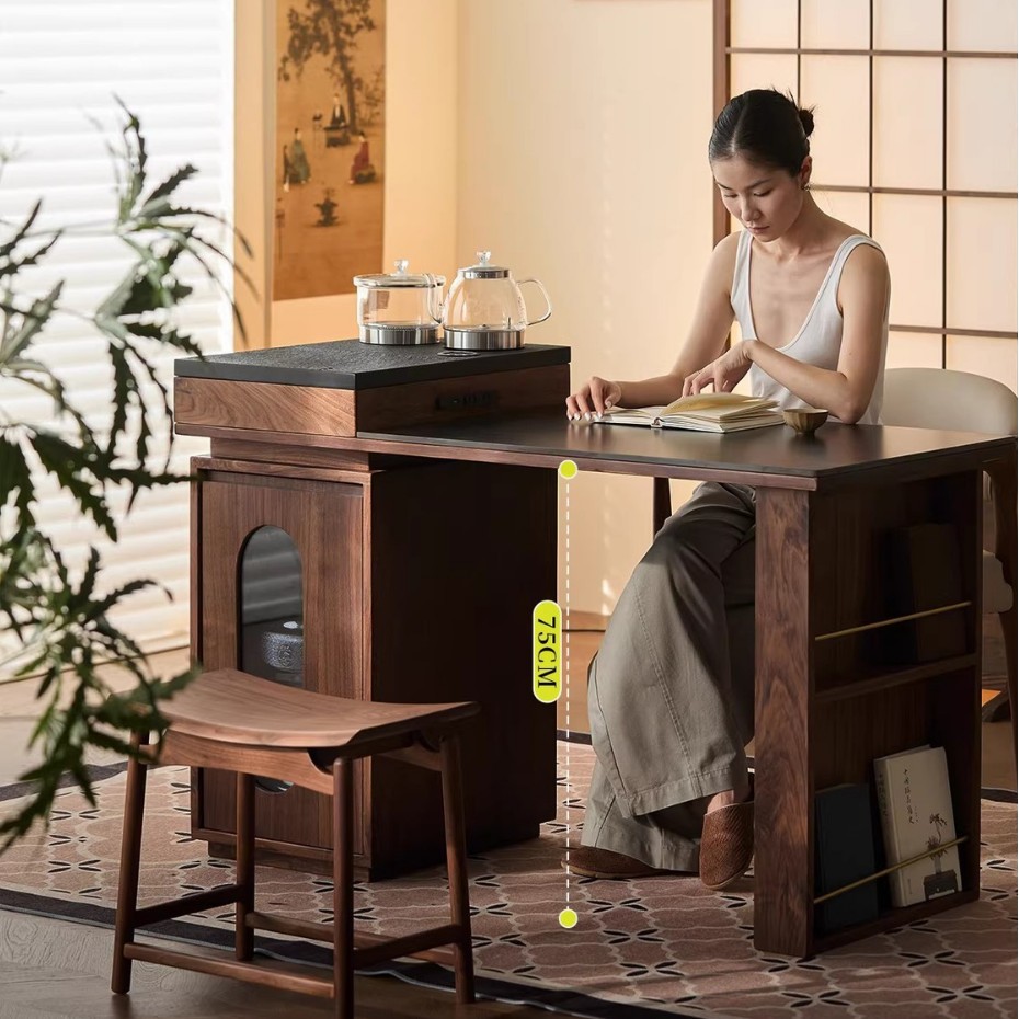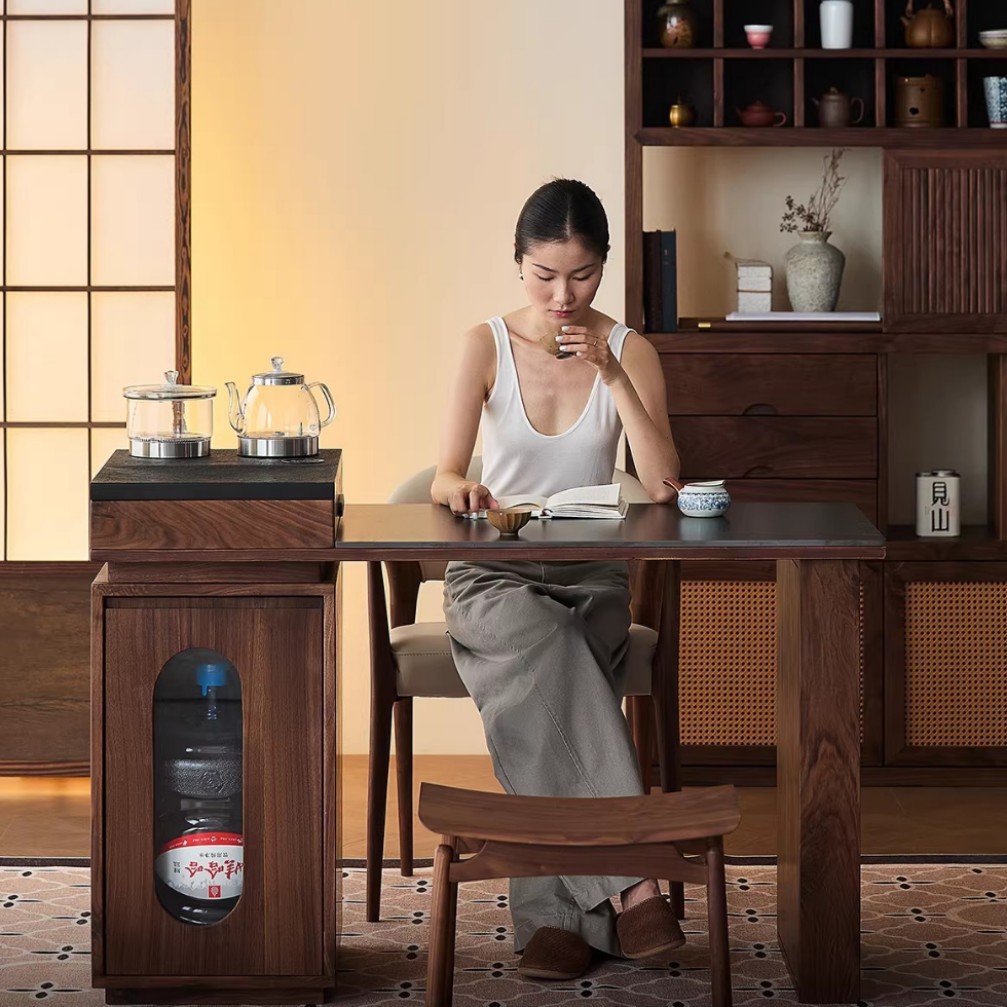 北美黑胡桃实木茶水桌茶台家用小型宋氏美学桌茶桌侧边柜一体茶台