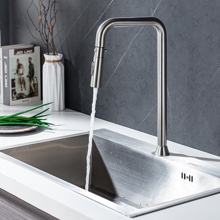 SUS304不锈钢七字型双温抽拉厨用龙头多功能出水模式清洗菜盆水池