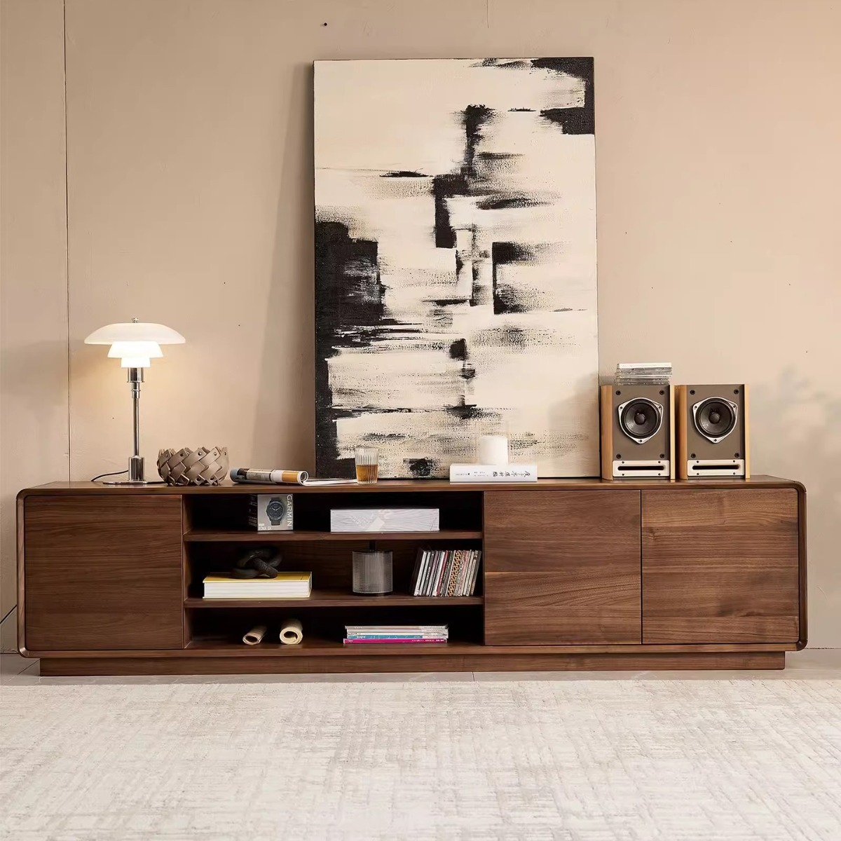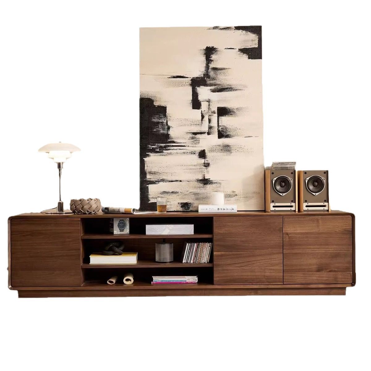 全实木电视柜北美黑胡桃木客厅中古视听柜原木现代简约收纳储物柜