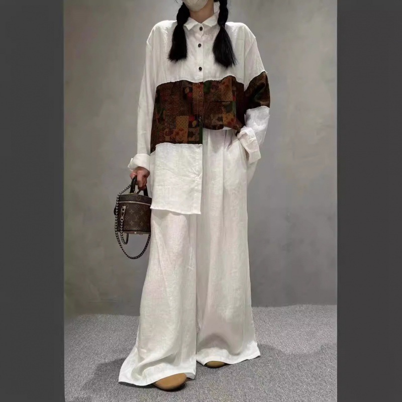 cz2024夏季新女式衬衫宽松衬衣亚麻休闲风时尚套装长袖高级感
