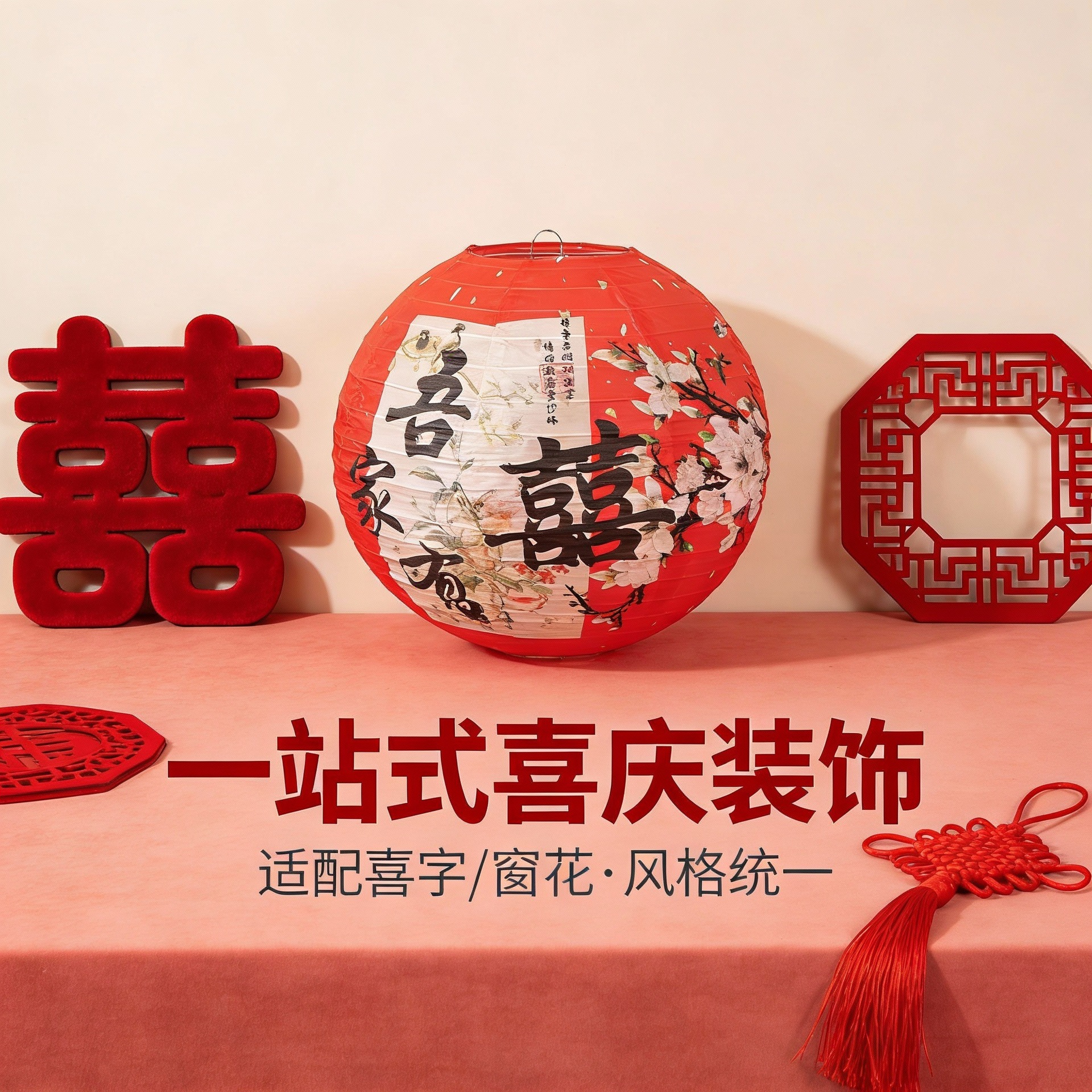 结婚灯笼挂饰婚房布置套装婚礼喜字拉花卧室装饰订婚拍照道具国风