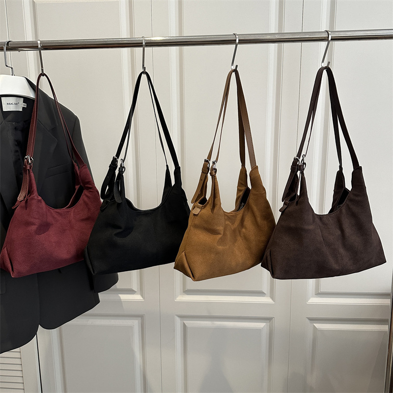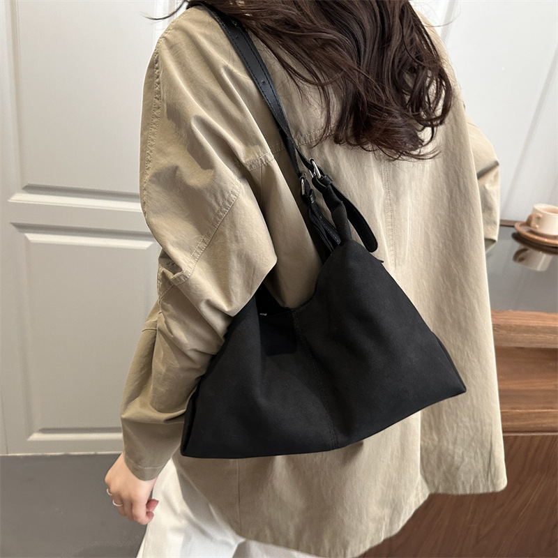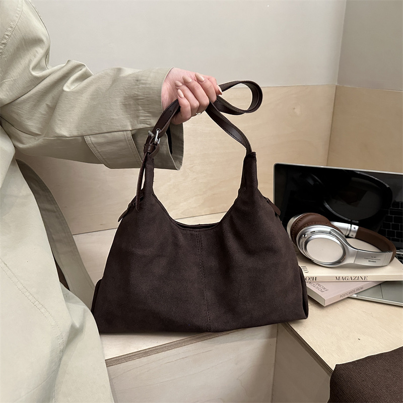 大容量慵懒感通勤大容量绒面托特包2026新款小众单肩斜挎包通勤包
