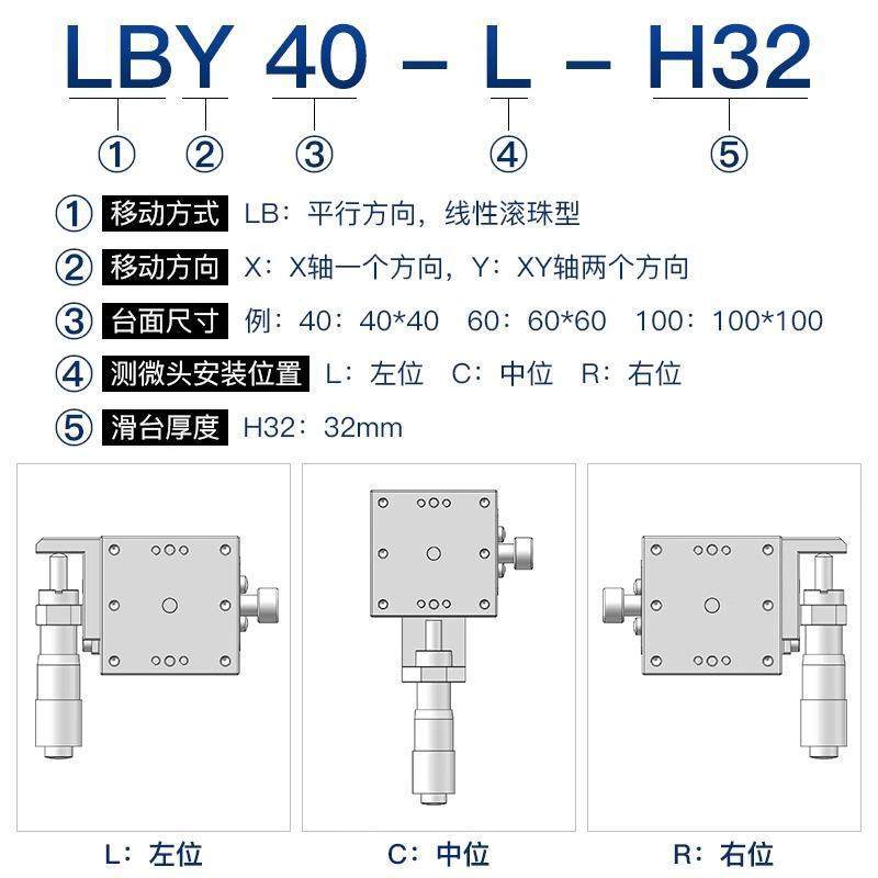 | 滑轨长度 | LBY40-R※台面40*40 高32※右 行程±6.5 负载10kg | 滑轨长度 | LBY60-L※台面60*60 高32※左 行程±6.5 负载20kg |