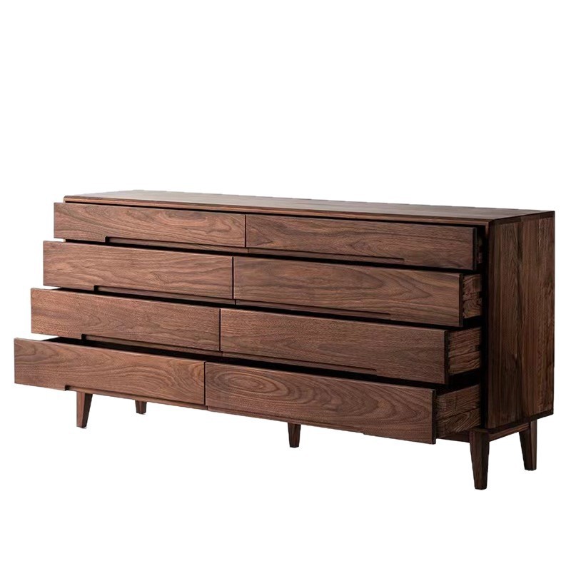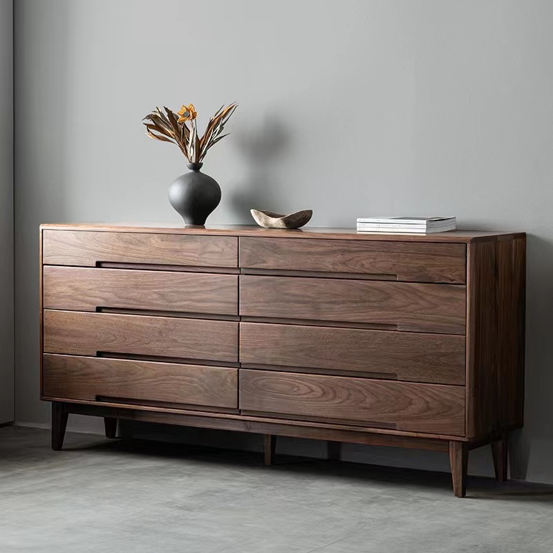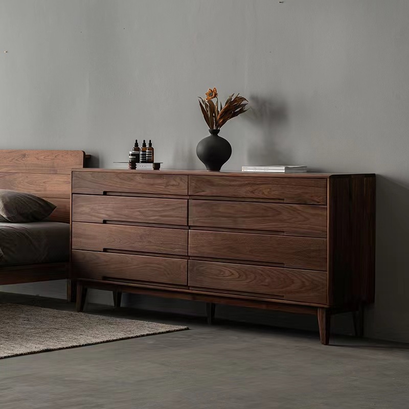 北美黑胡桃木新中式简约实木八斗柜卧室抽屉式储物柜北欧榫卯日式