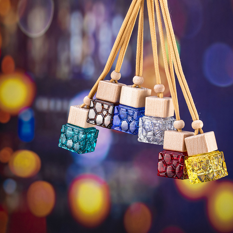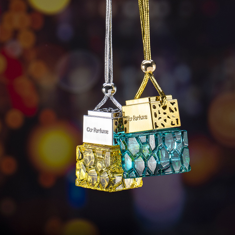 跨境迷你方形水立方车载香薰玻璃瓶挂架扩香器香氛挂件玻璃瓶10ml