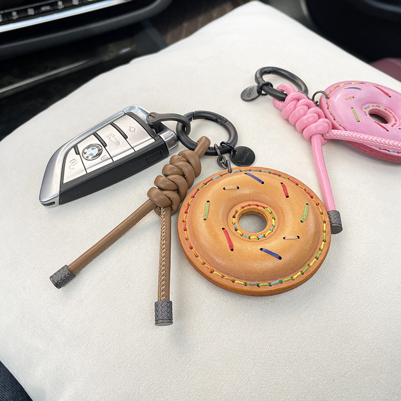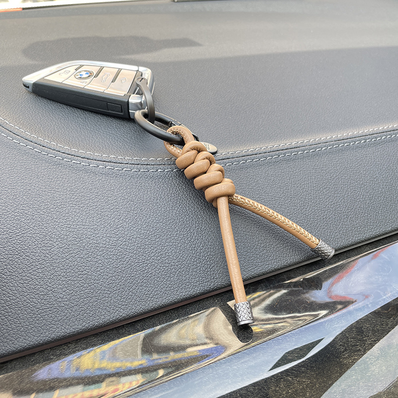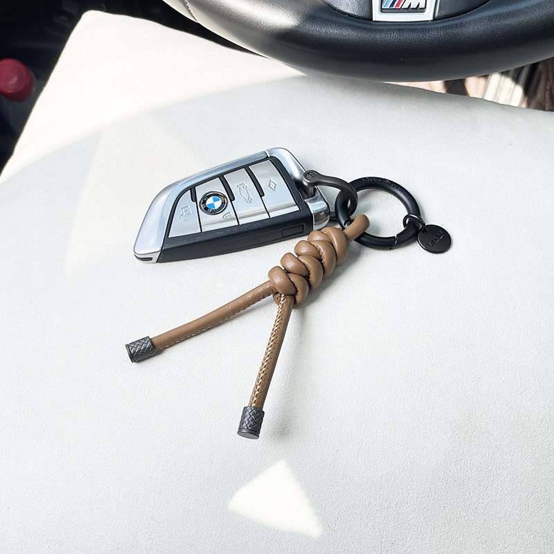 羊皮编织皮革钥匙扣创意时尚包包挂件DIY手工编织链条挂饰配件