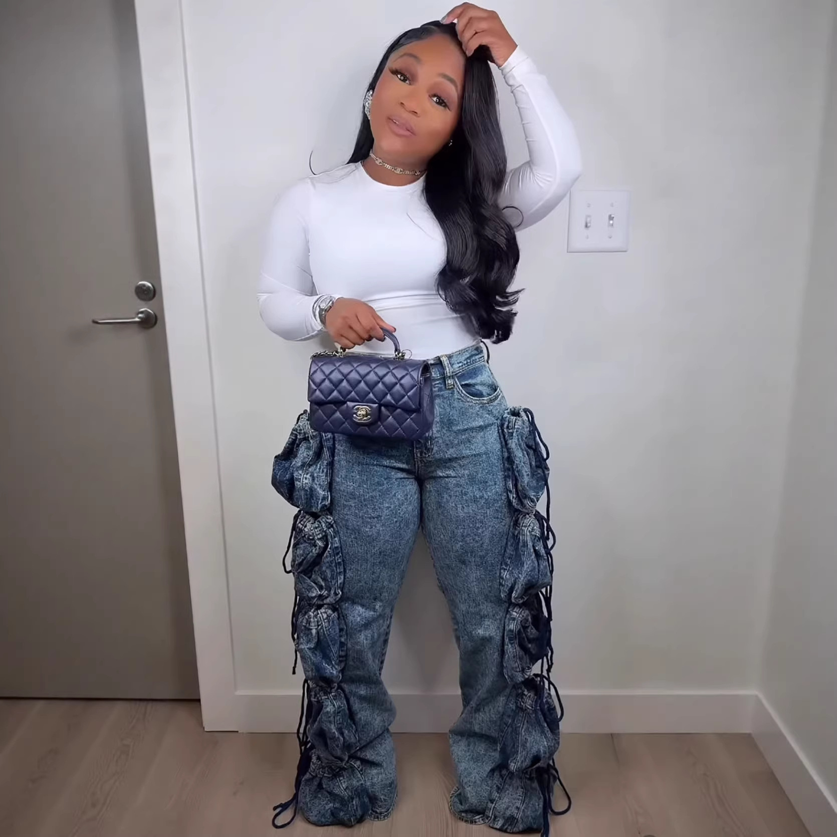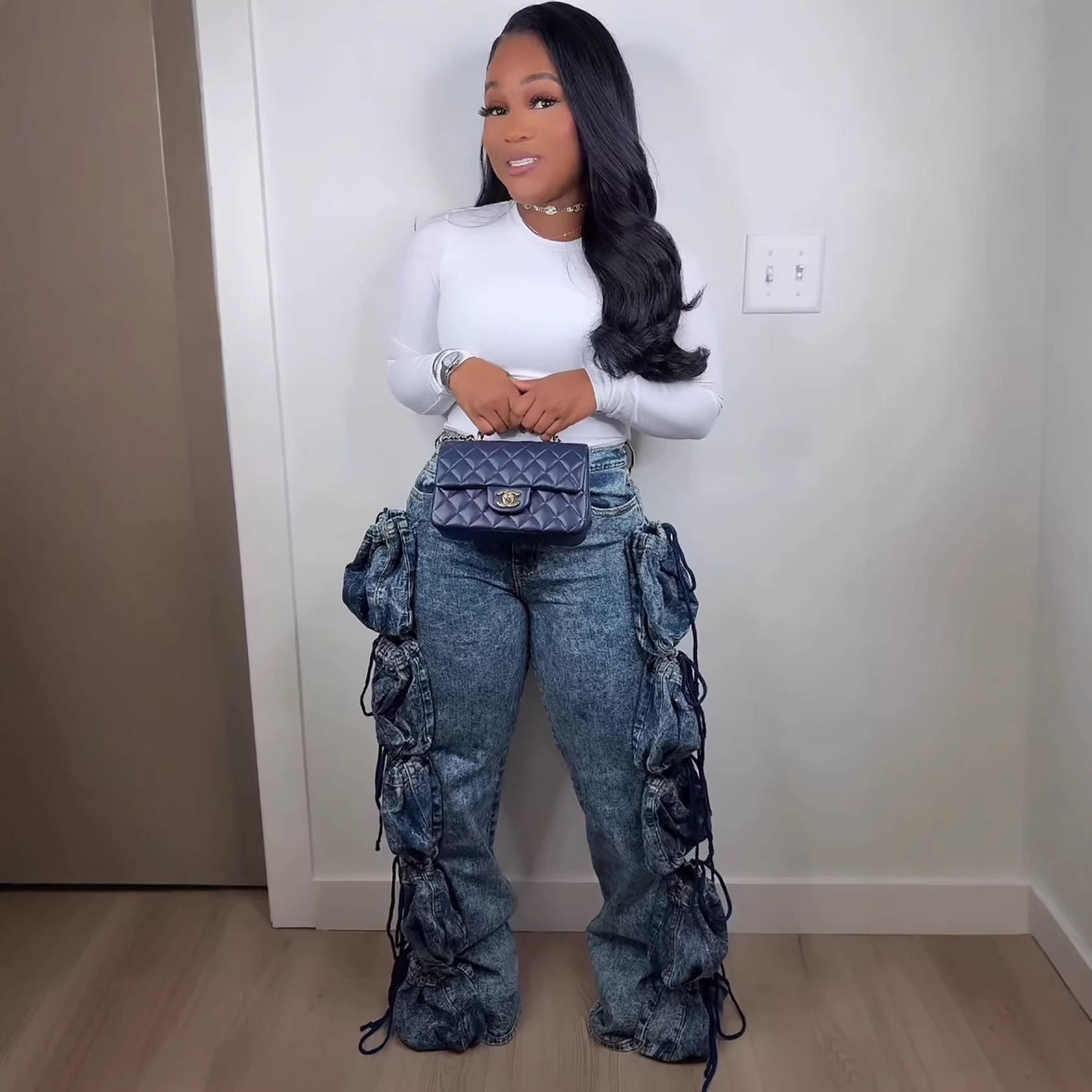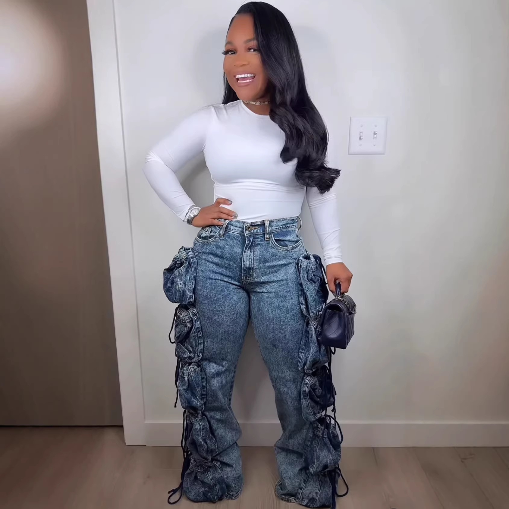 欧美女式牛仔工装裤亚马逊跨境女装街头个性多布袋设计感直筒长裤