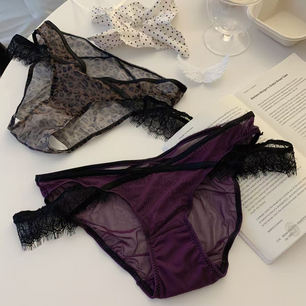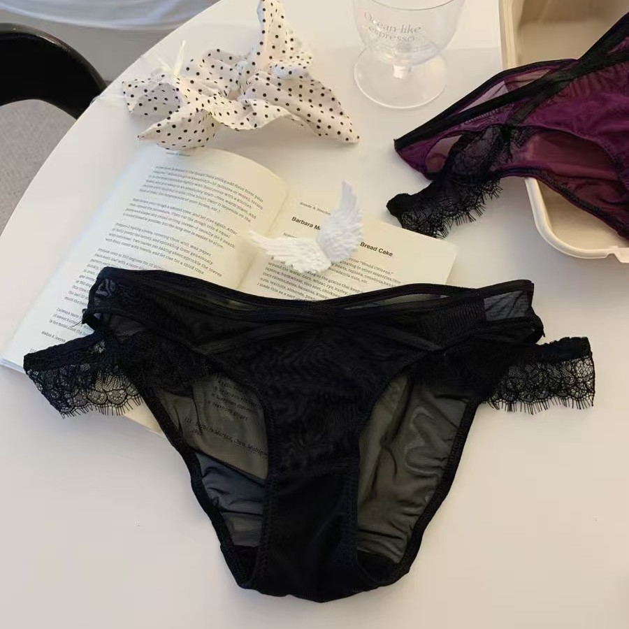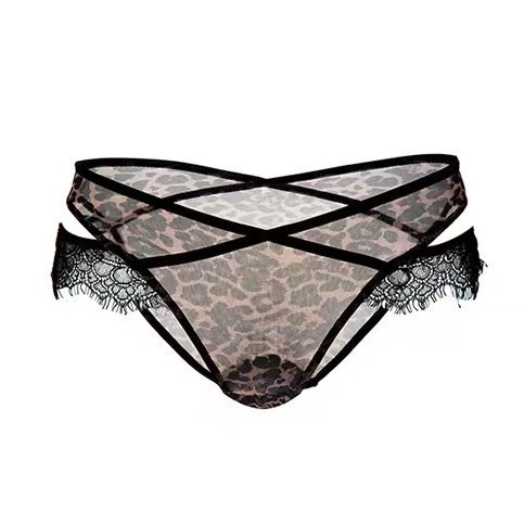 新款欧美风睫毛交叉蕾丝女士内裤豹纹轻薄时尚透气舒适无痕三角裤