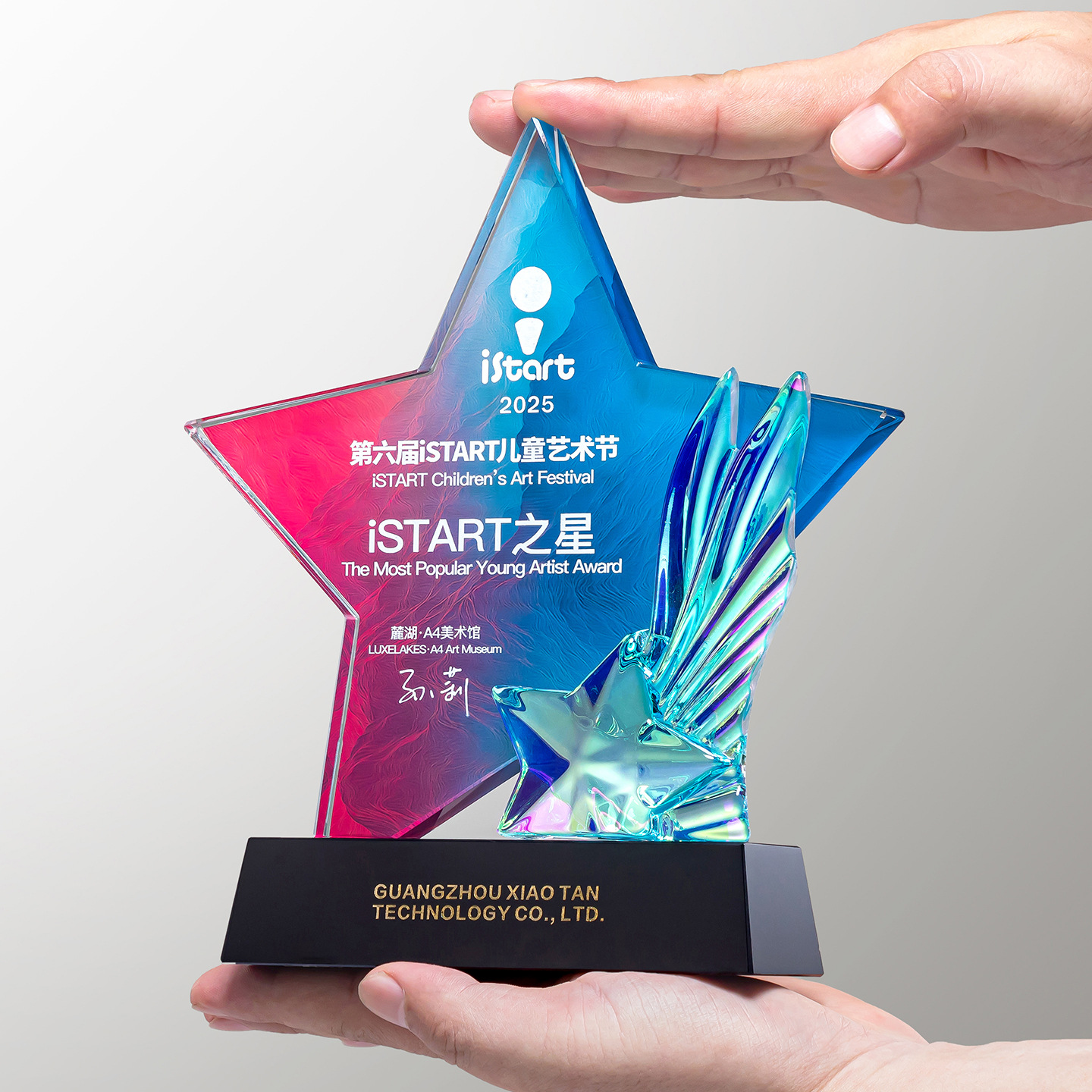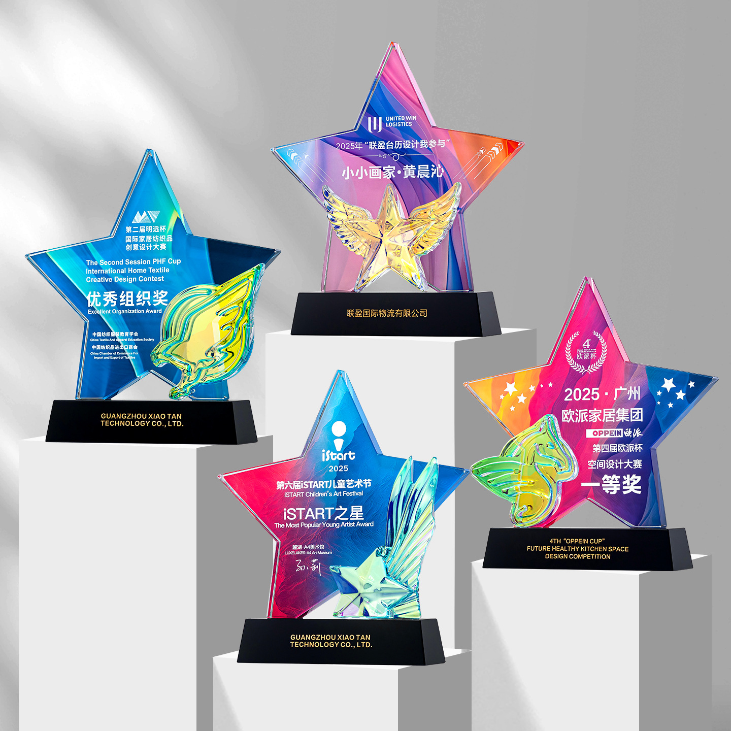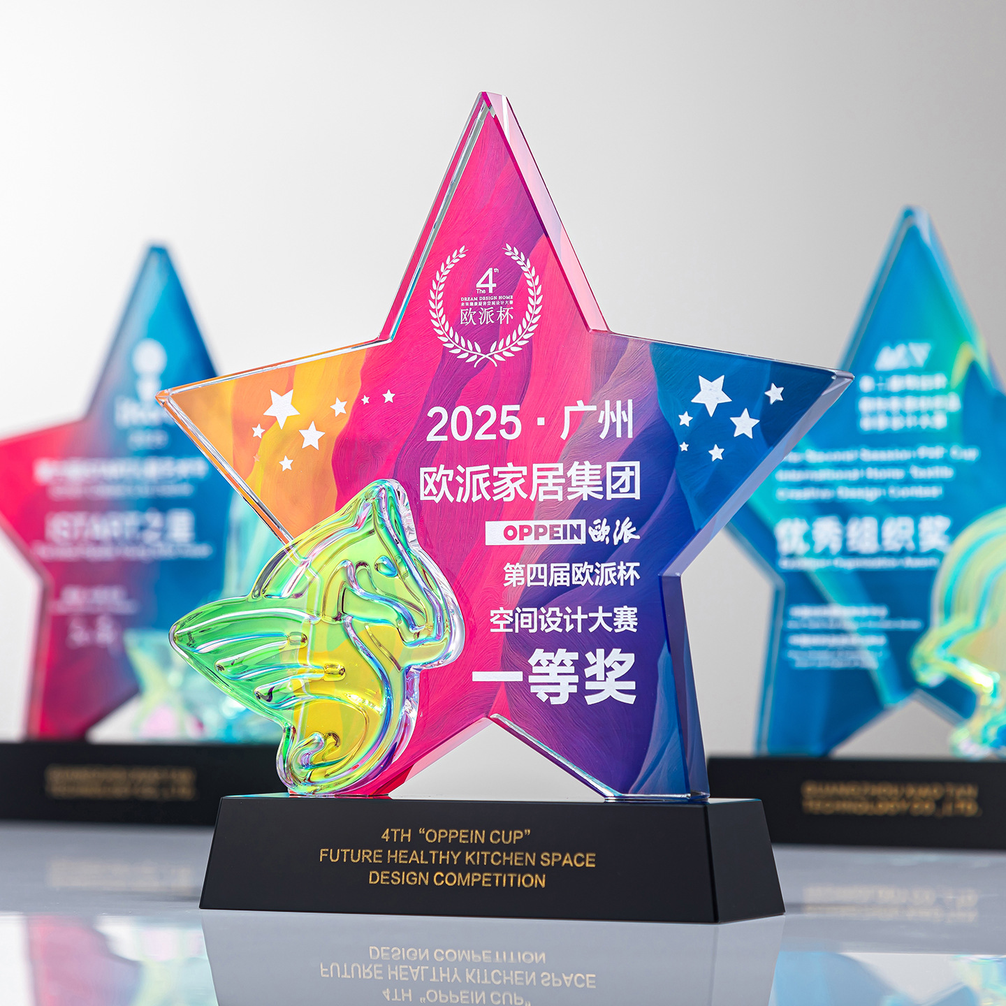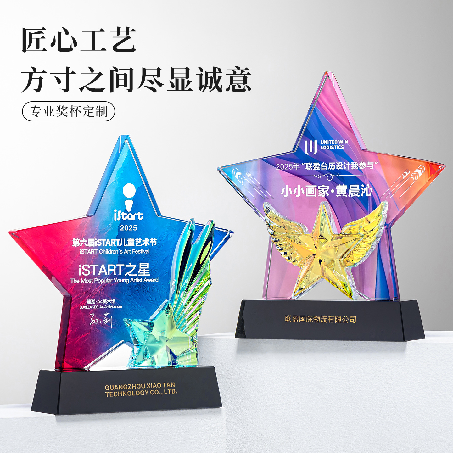 2025创意彩印五角星水晶奖杯高档大气荣誉奖牌刻字制作