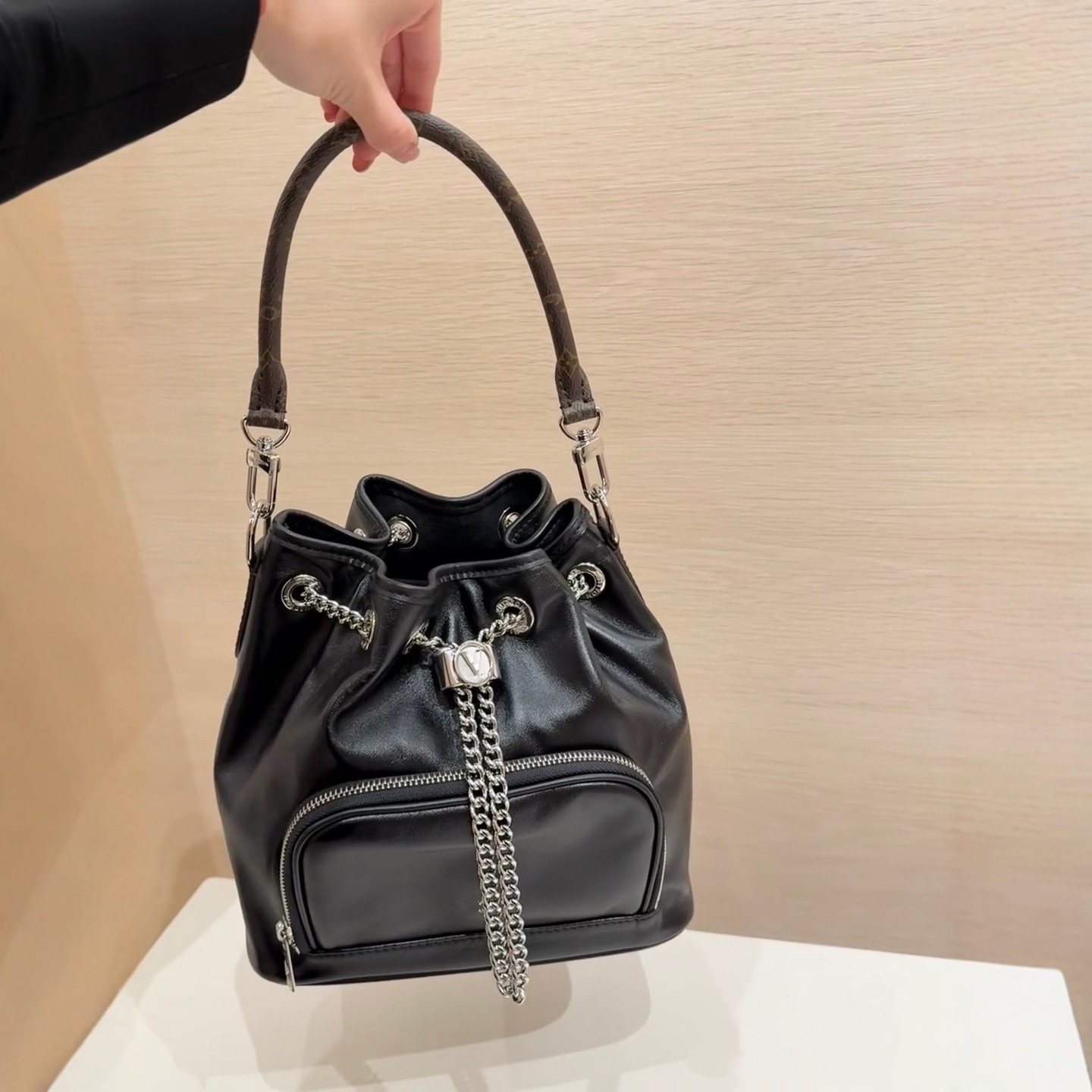 黑武士水桶托特包女2026驴家大容量小羊皮抽绳链条手提单肩斜挎包