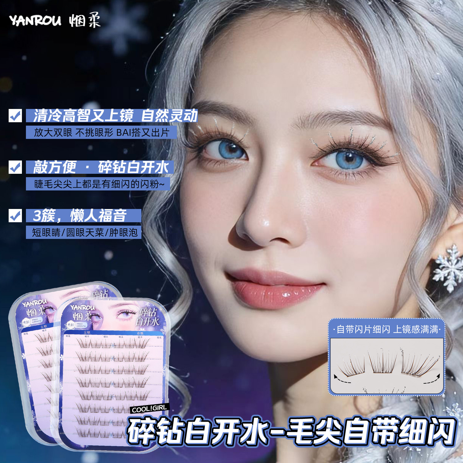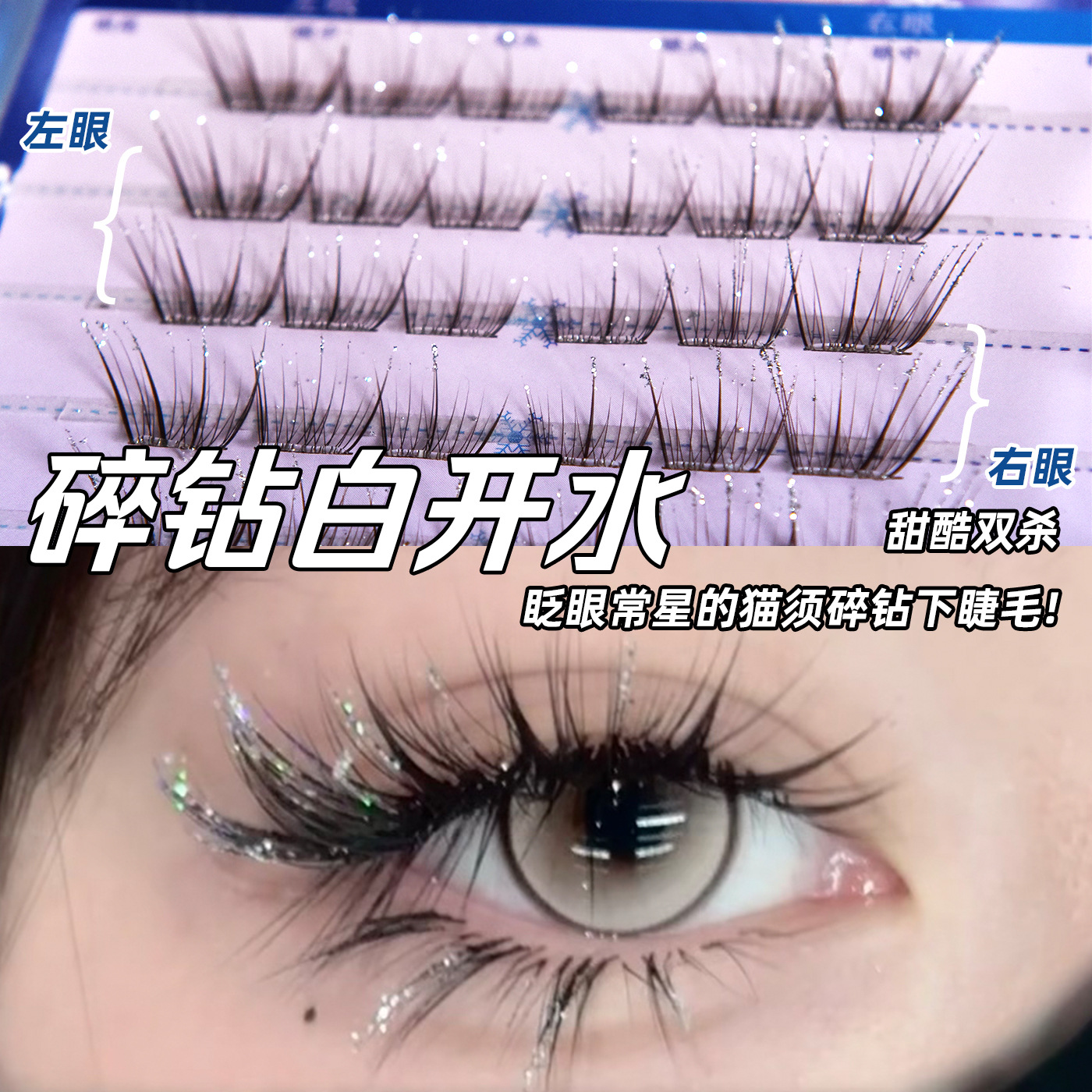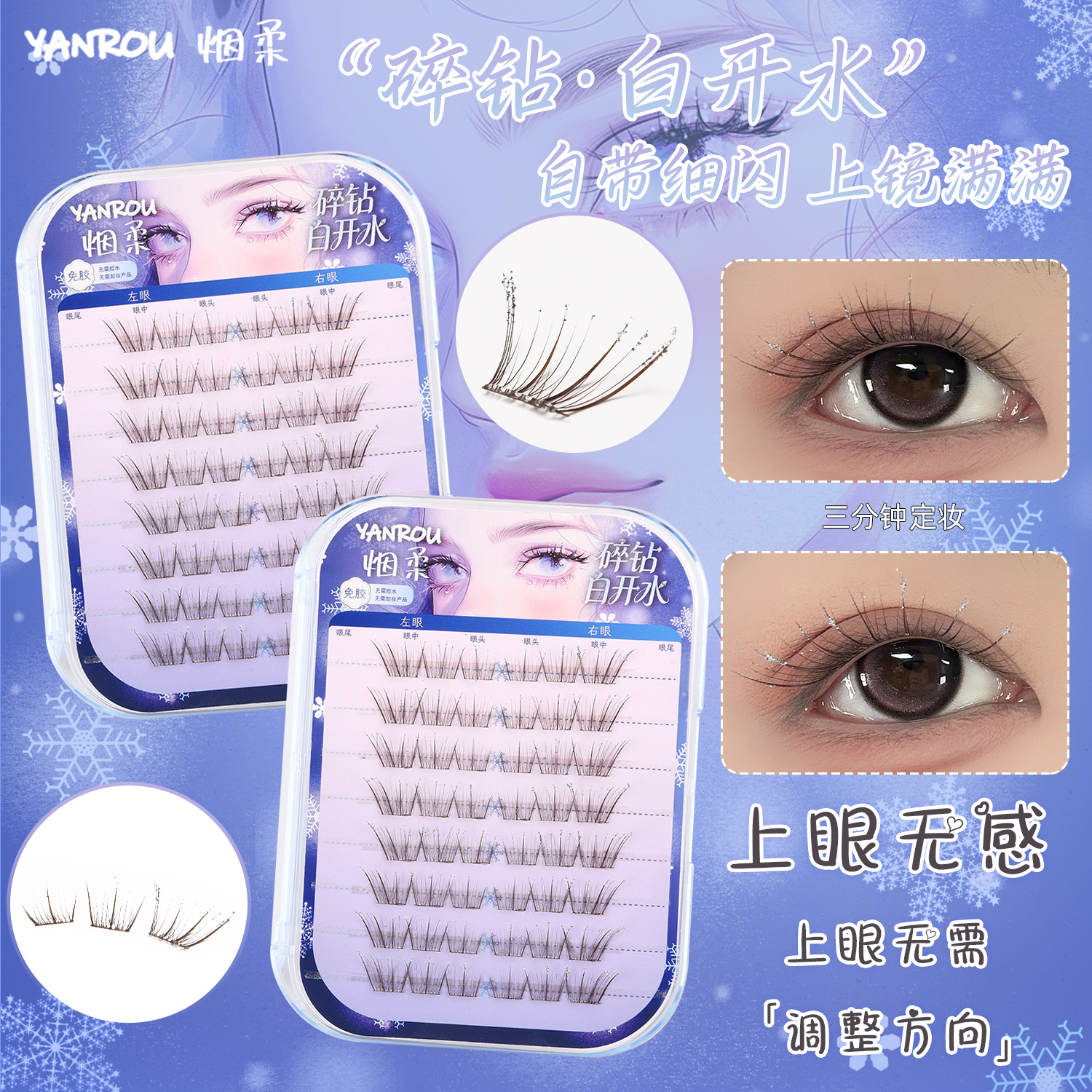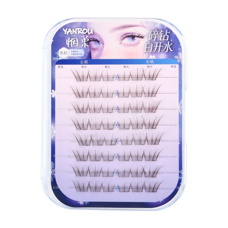 烟柔碎钻白开水假睫毛免胶棕色睫毛自然满天星睫细闪秋冬精灵