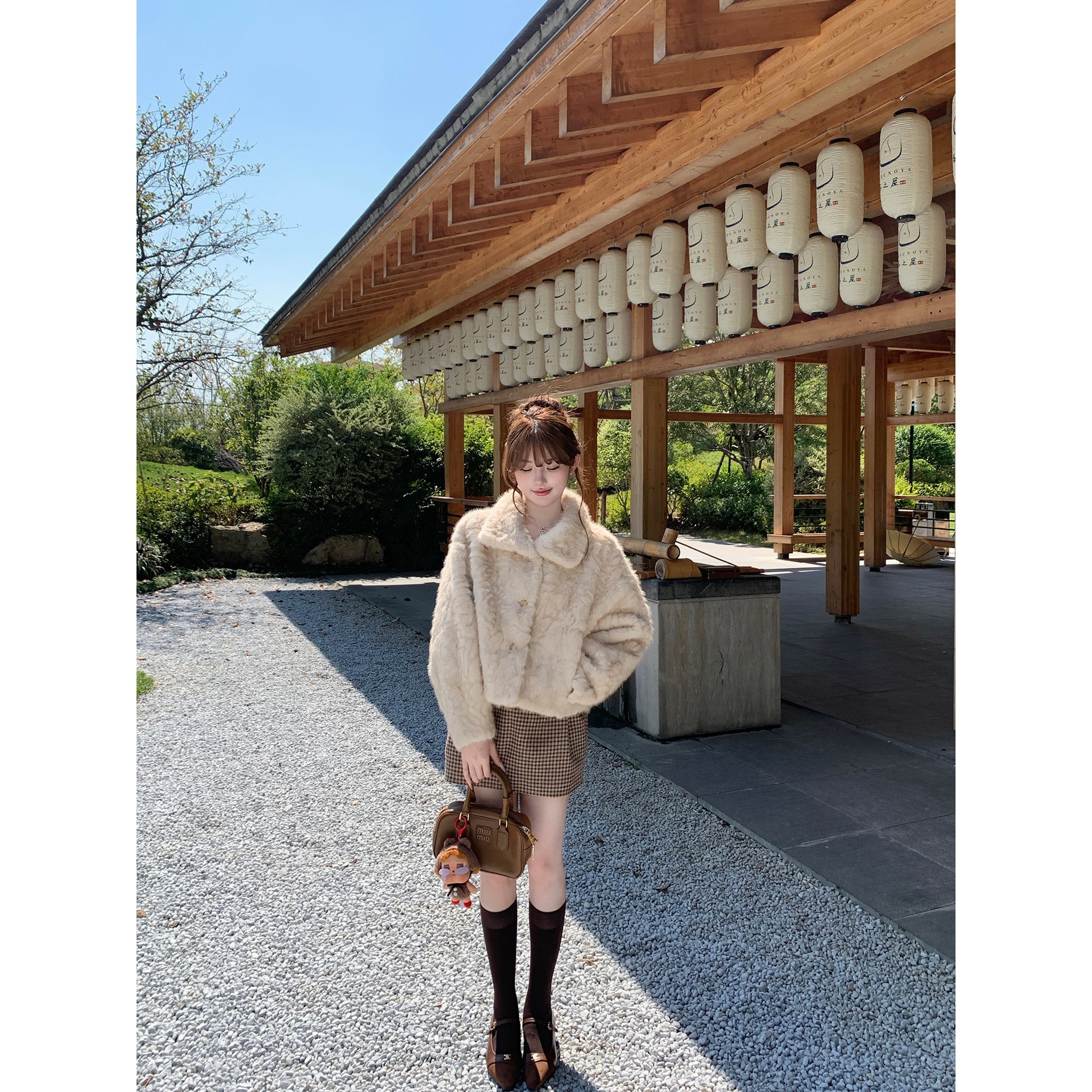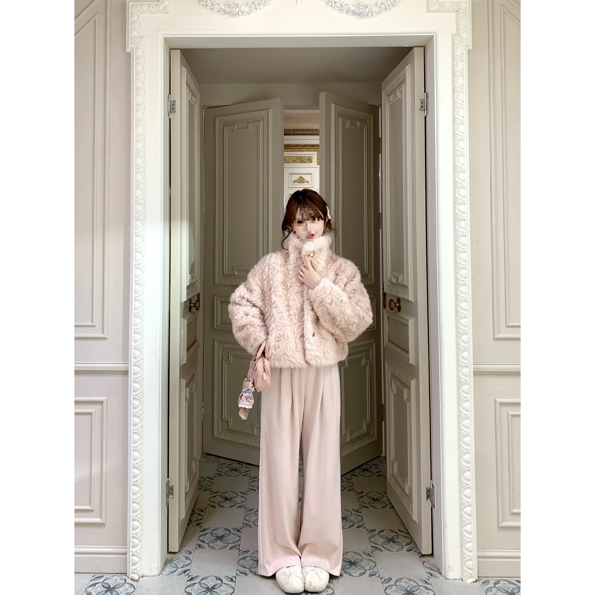 2025新面料!月光手书冬季立领翻领毛毛刷花皮毛一体外套保暖上衣