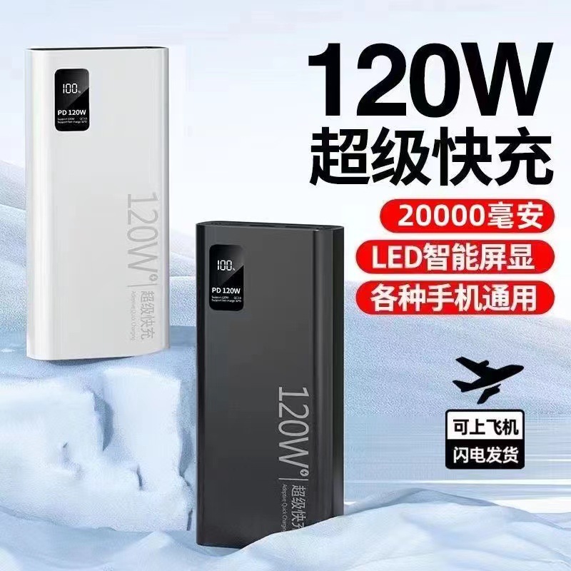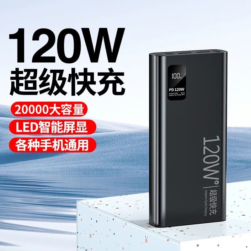 3C认证120W超级快充充电宝20000毫安大容量双向快充数显移动电源