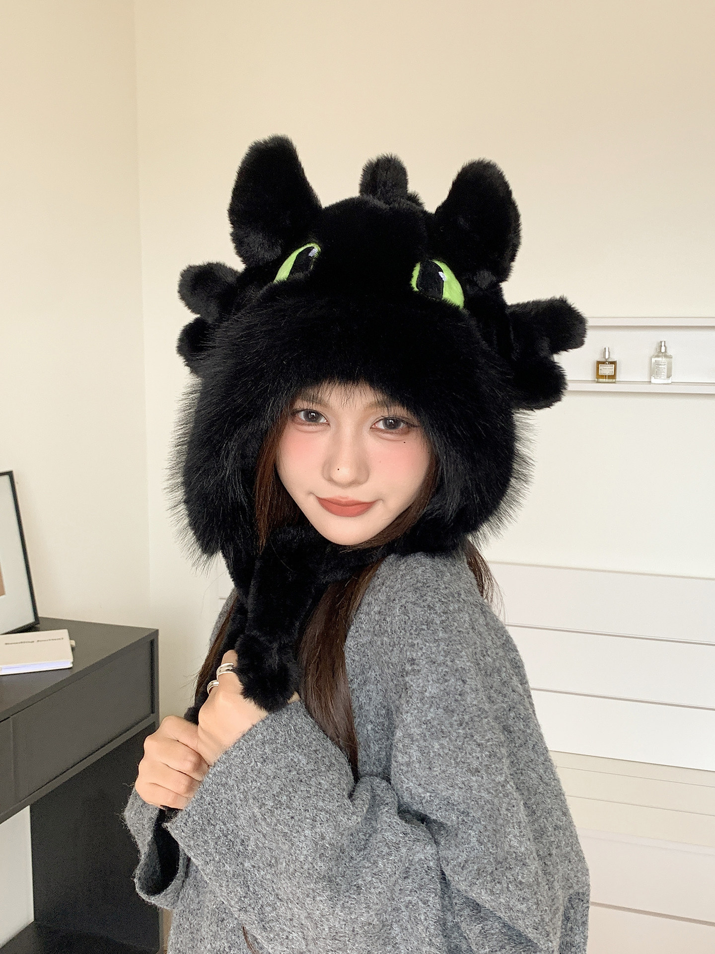 围巾款-黑色 耳朵会动