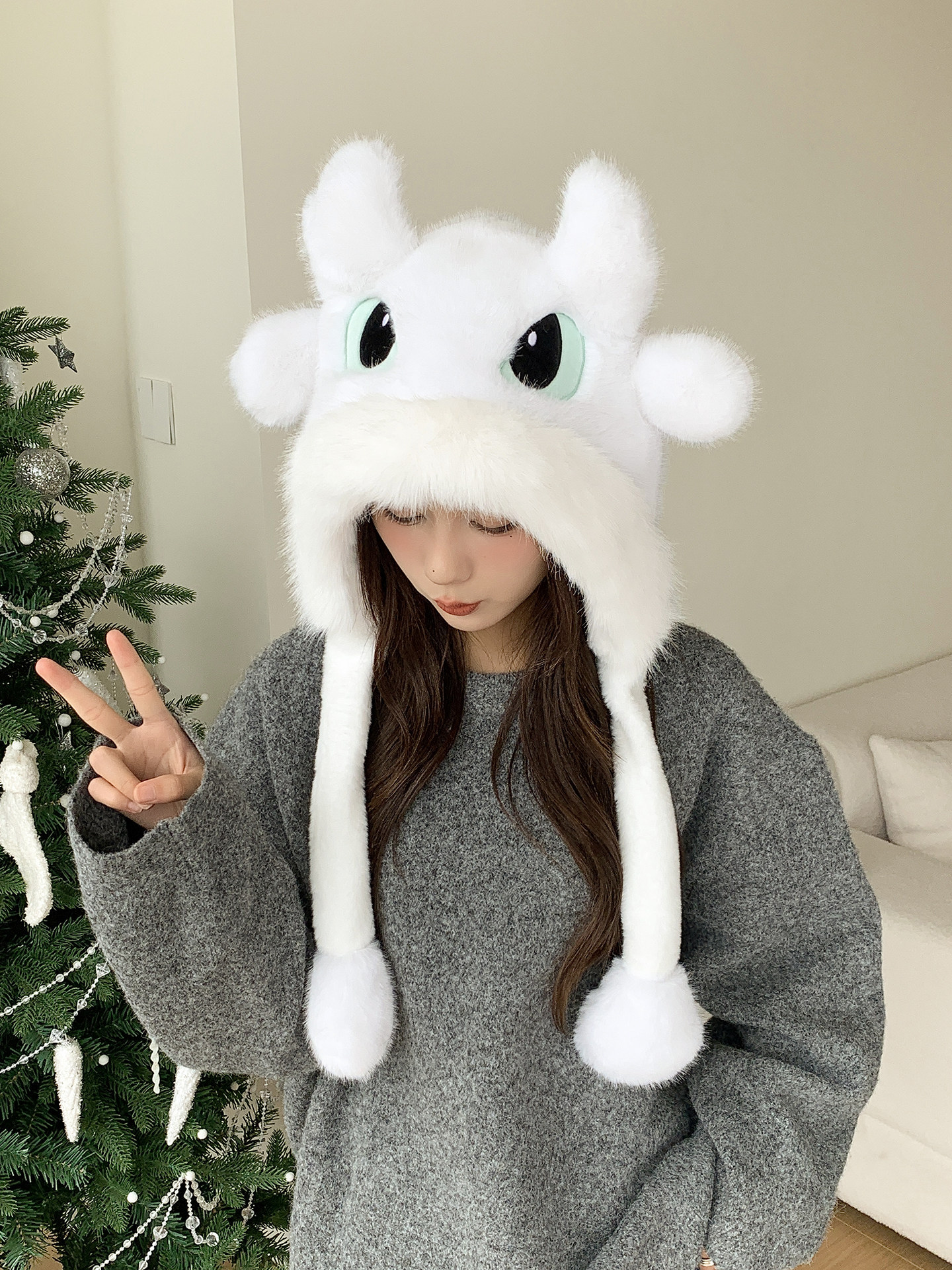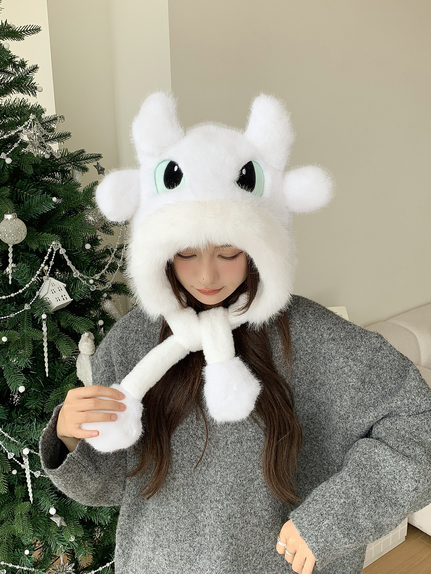 围巾款-白色 耳朵会动