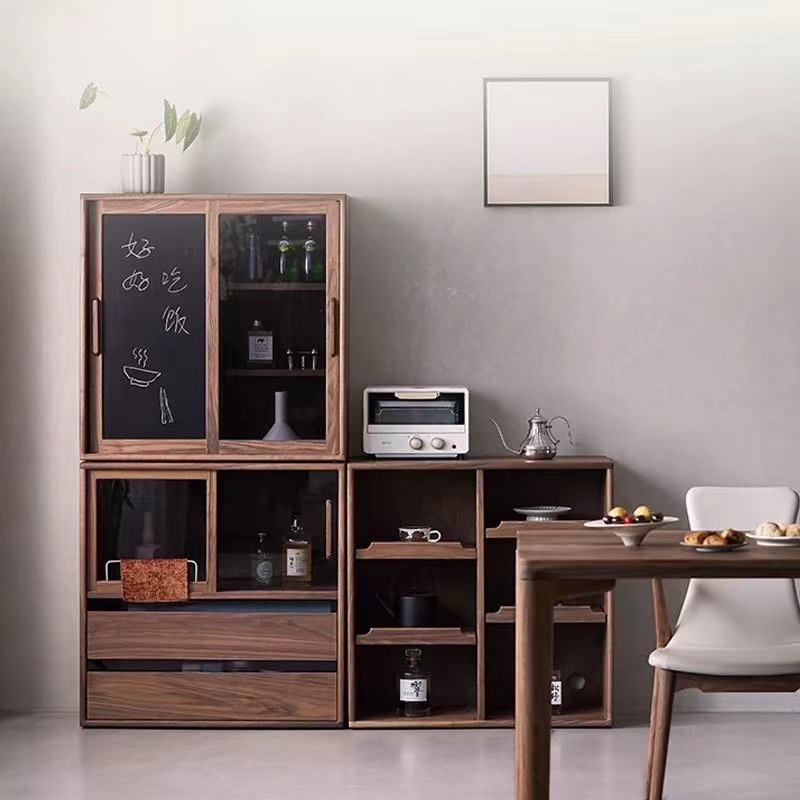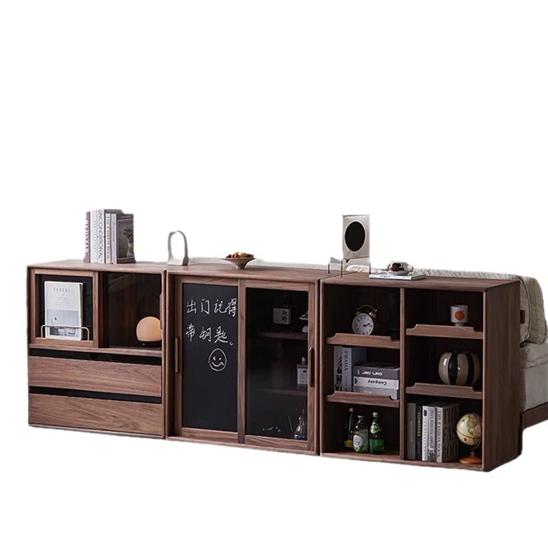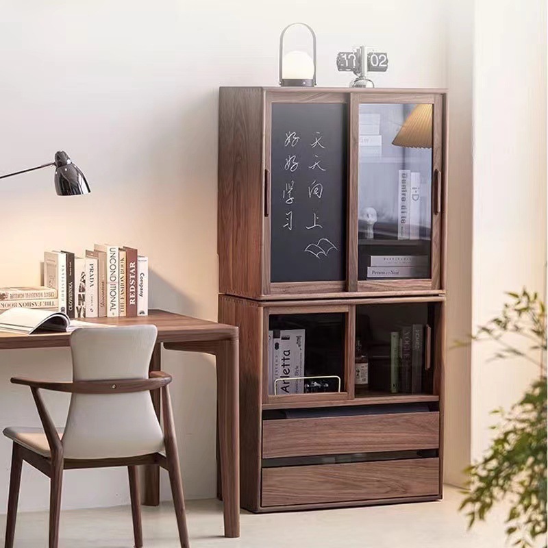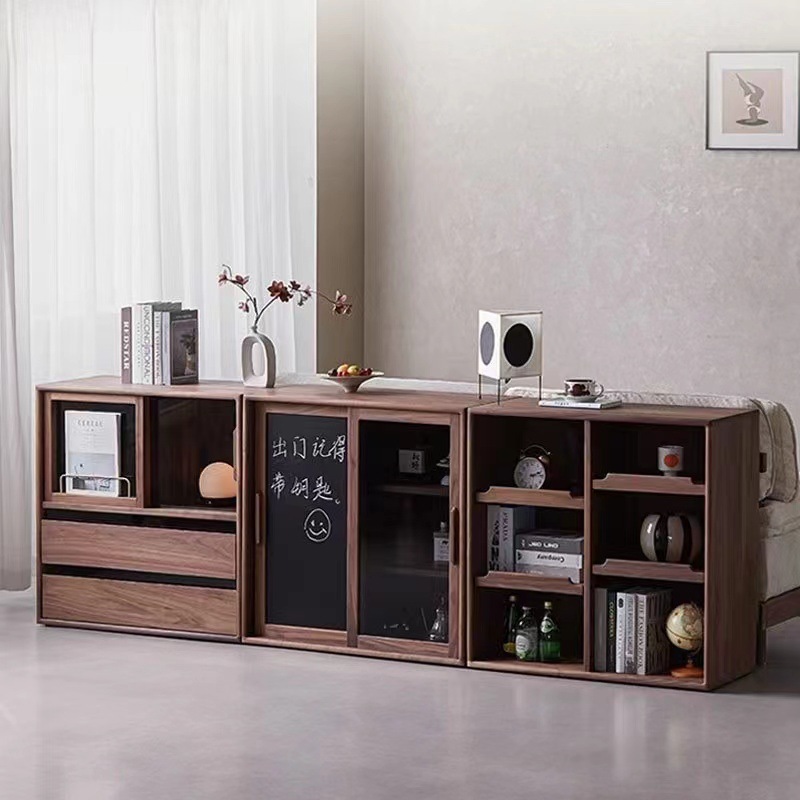 北欧实木组合柜黑胡桃木书柜收纳展示储物边柜落地电视柜客厅置物