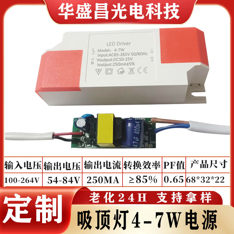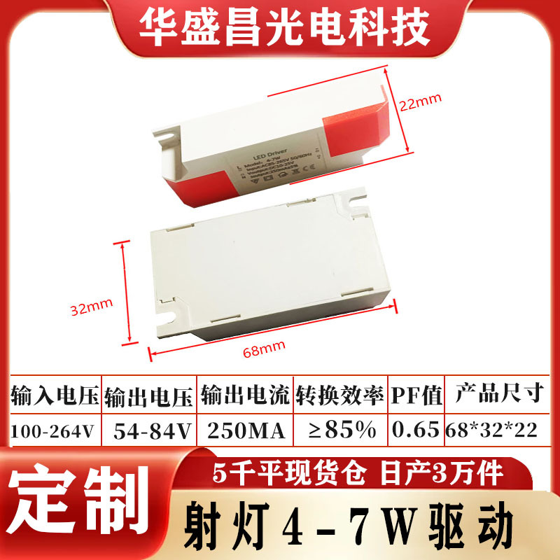 led驱动电源4W 7W筒灯驱动电源250ma隔离恒流l驱动器led通用