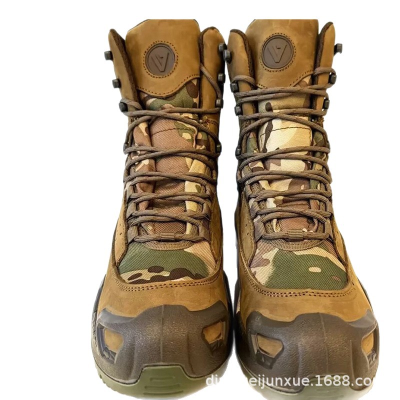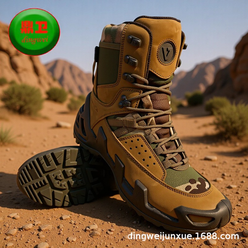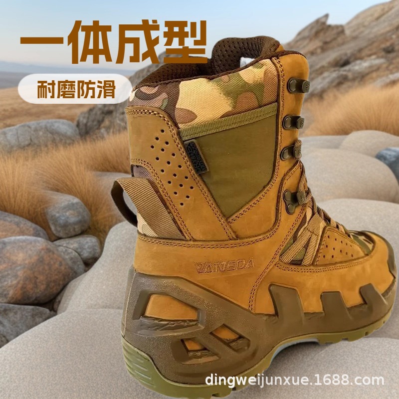 加厚牛皮沙漠靴耐磨防滑鞋 户外工厂生产一体成型透气作战靴迷彩