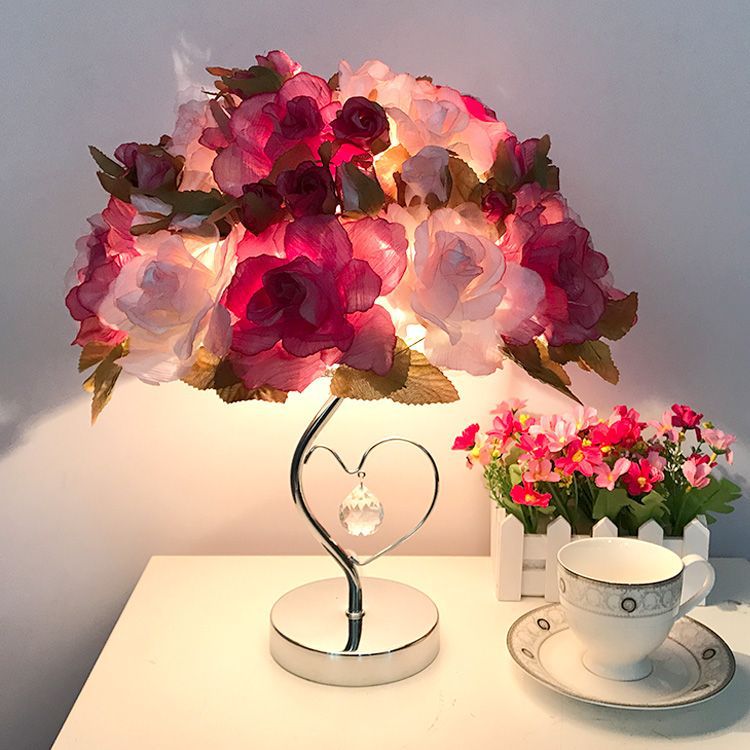 玫瑰花水晶台灯结婚礼物INS创意婚庆公主婚房长明温馨卧室床头灯