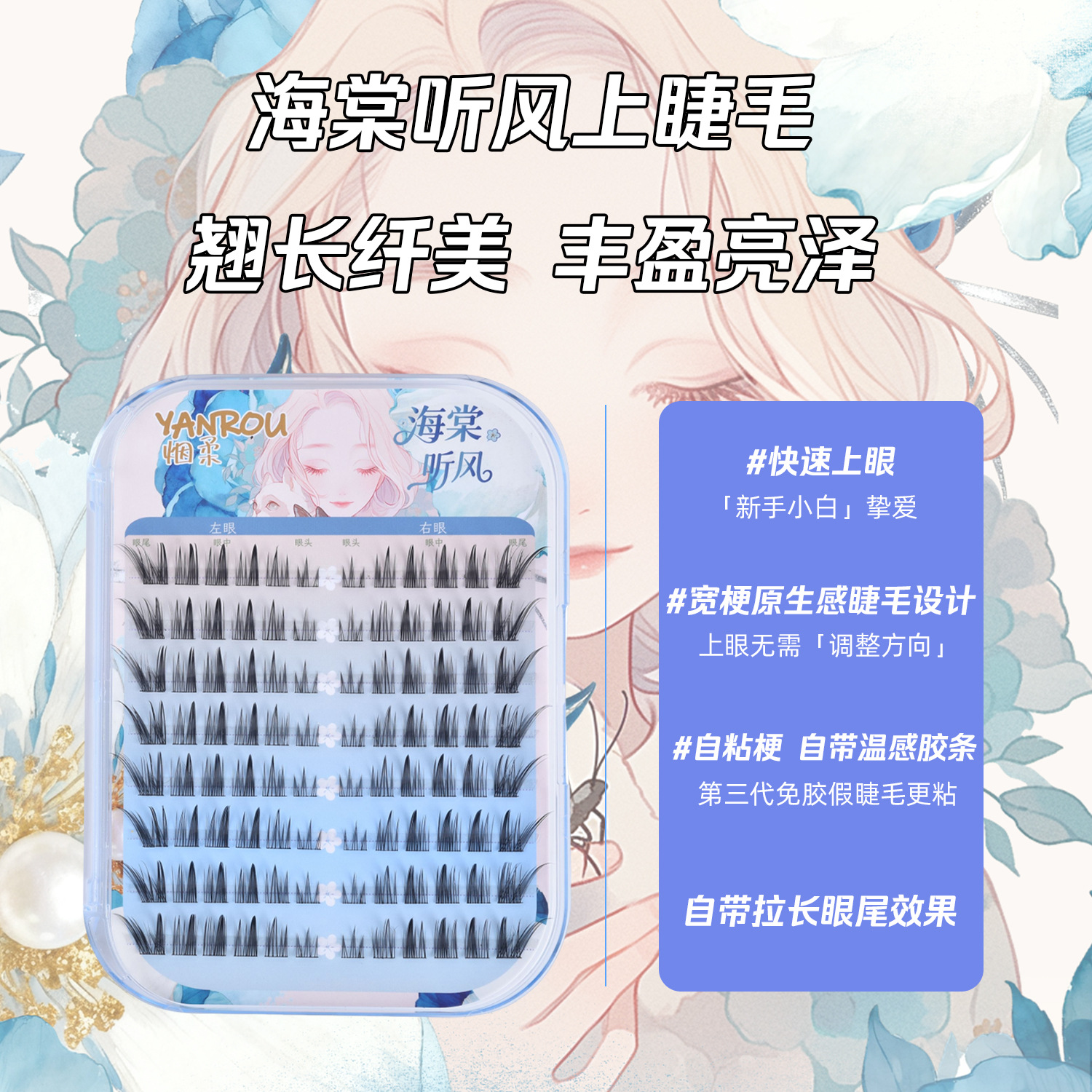 烟柔海棠听风免胶免卸假睫毛狐系睫毛斜飞上镜眼尾拉长免胶假睫毛