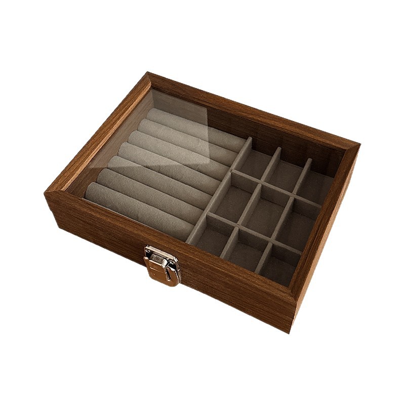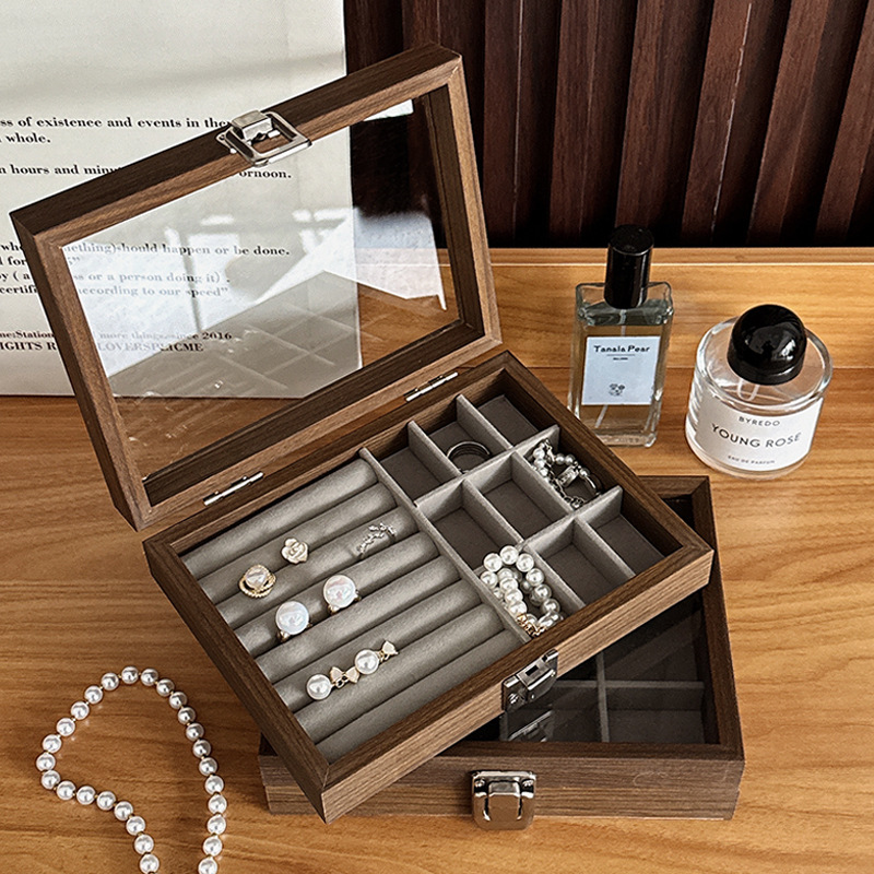 新款高档精致便携小型实木手饰品戒指项链耳钉耳饰盒首饰收纳盒