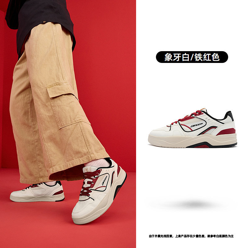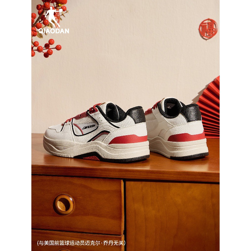 海盐|乔丹红色新年运动男子板鞋春季新款本命年皮面滑板鞋增高鞋