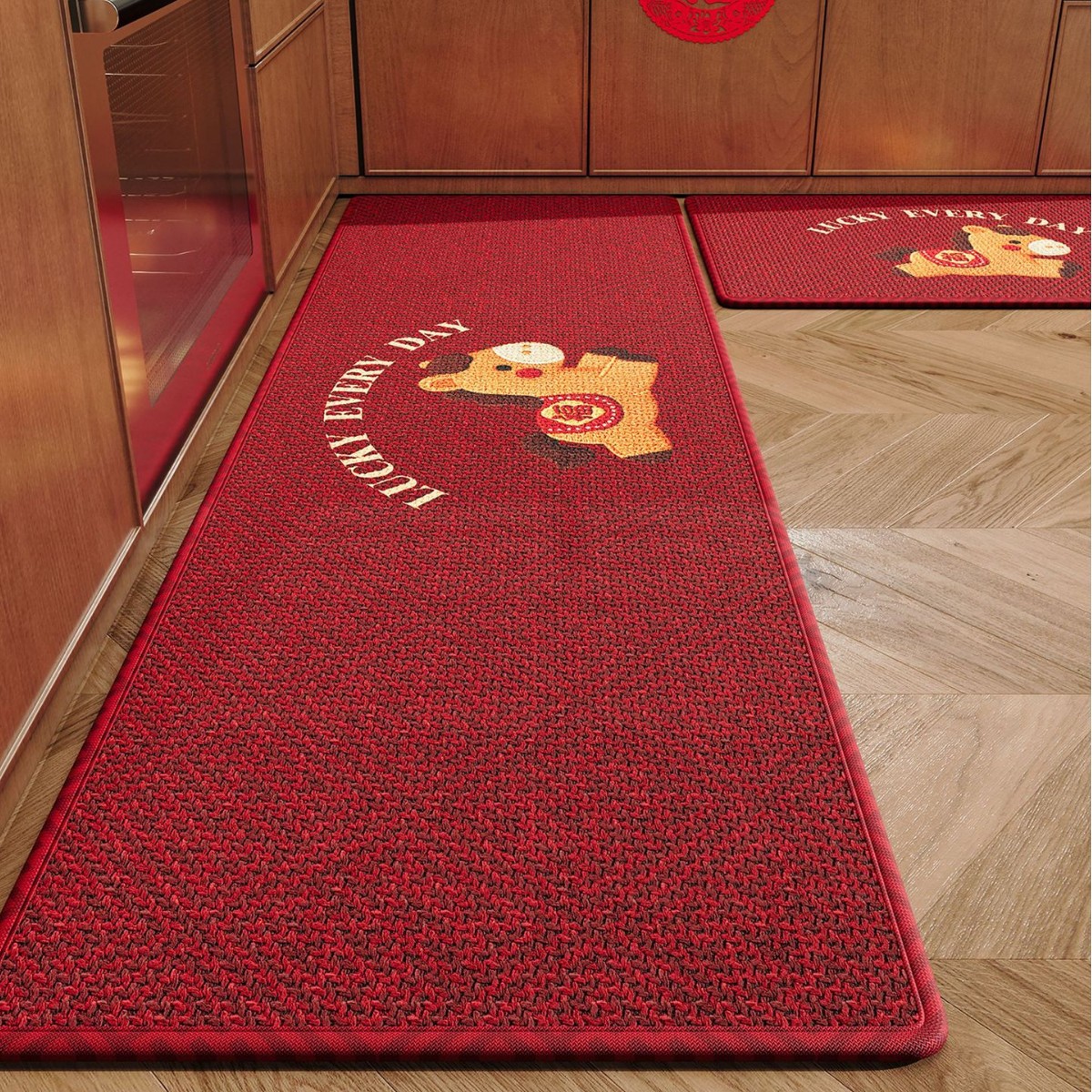 厨房专用地垫红色马年卡通家用免洗吸水速干擦脚垫除尘防滑垫地毯