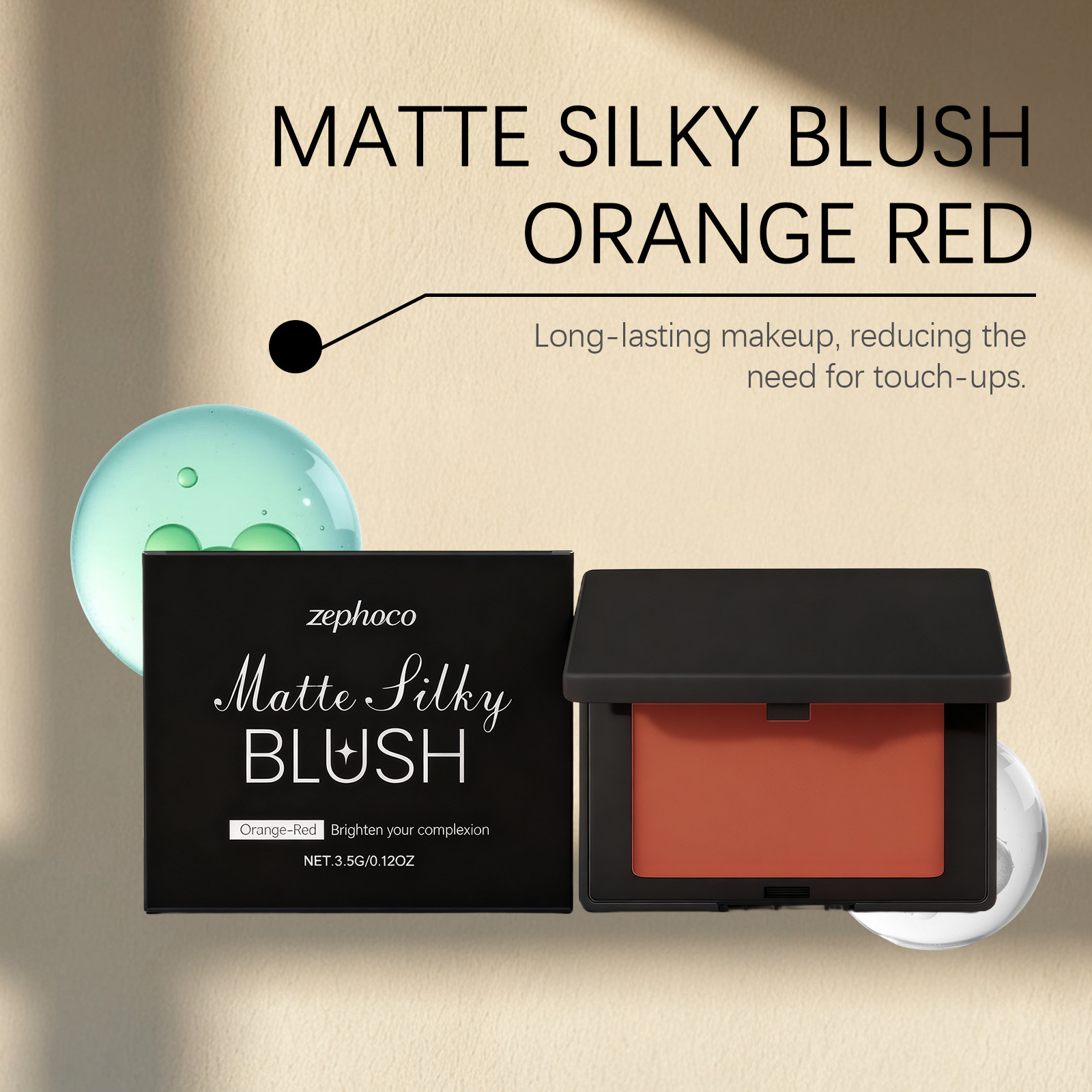 zephoco 哑光丝滑腮红 便携长效妆感自然细腻贴合肤质单色腮红盘