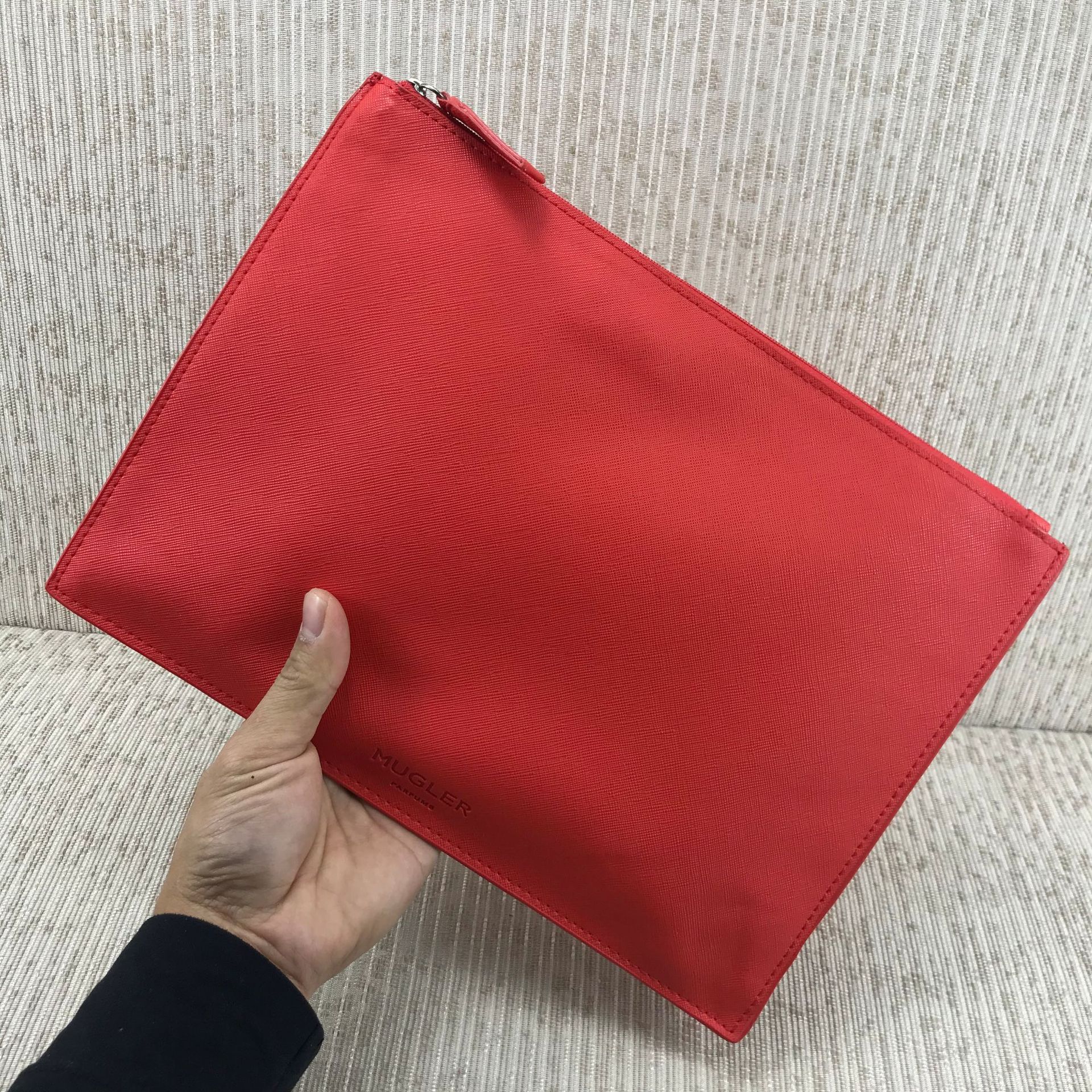 外贸尾单 蒂埃里穆勒红色手拿包 信封包 简约拉链票夹证件包