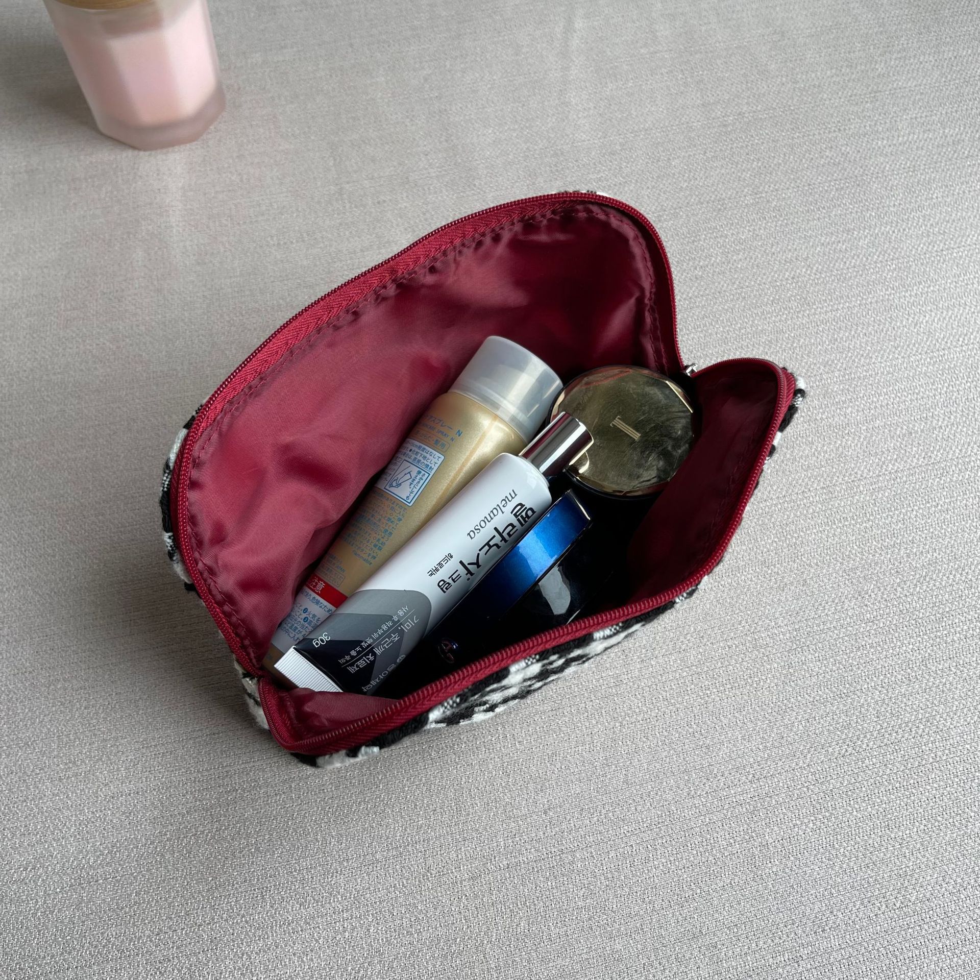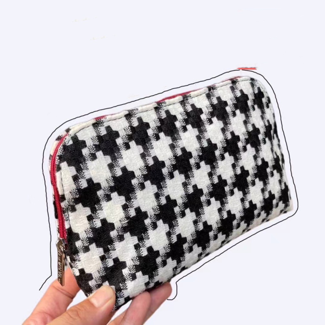 出口外贸赠品 B千鸟格编织化妆包 随身便携补妆收纳包 整理包