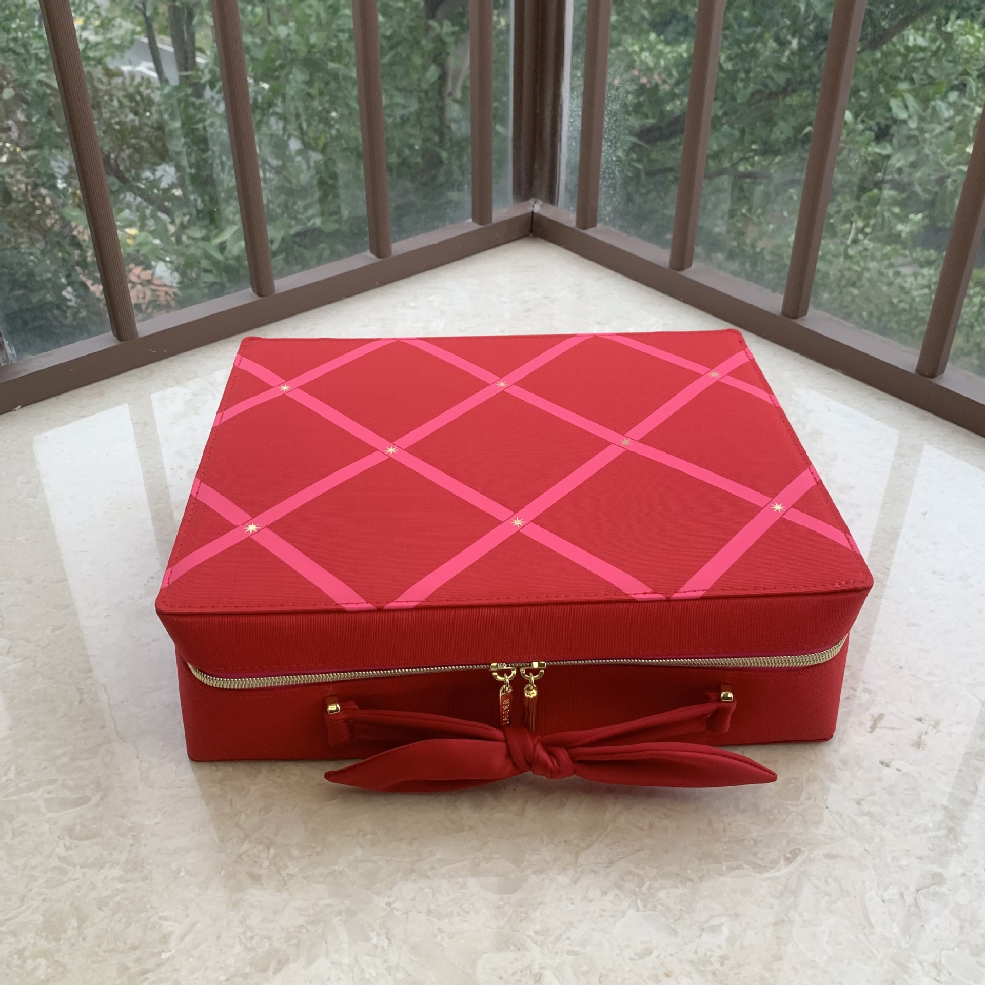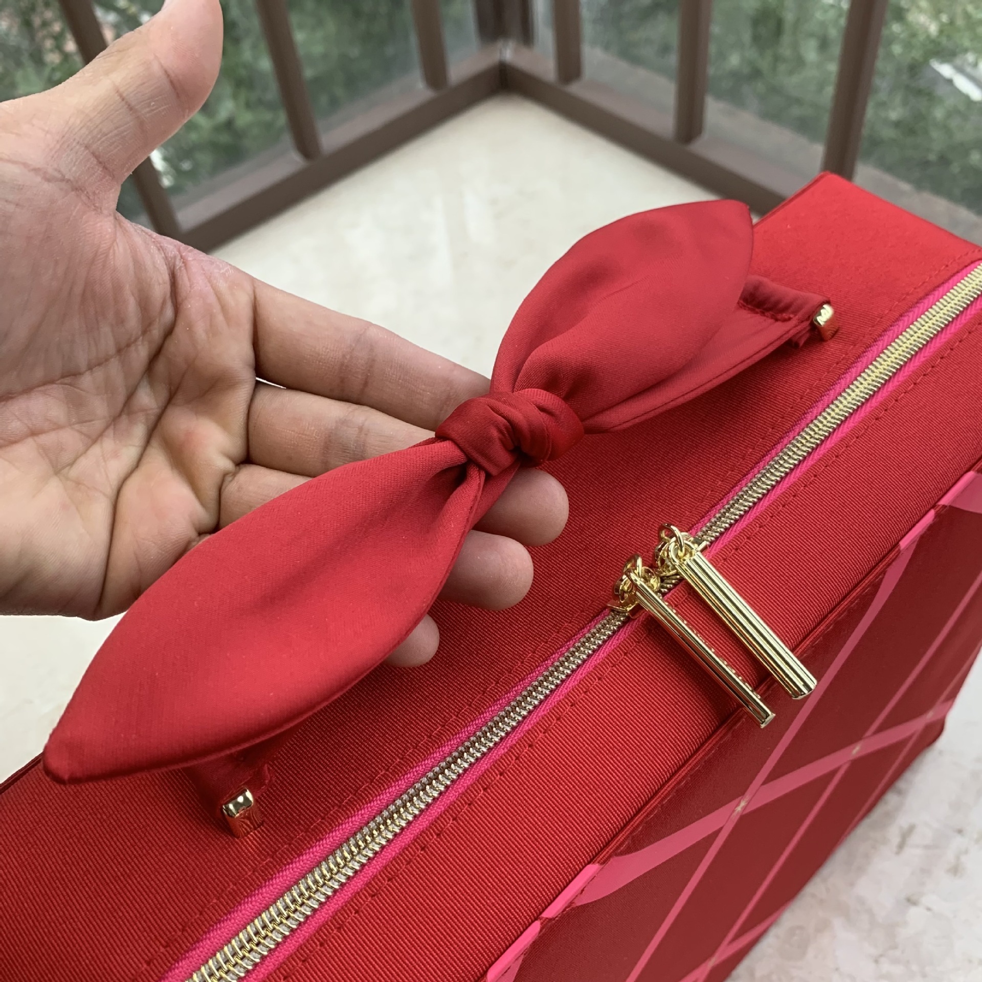 外贸出口原单 EL红色蝴蝶结化妆箱 旅行手提收纳包大容量化妆包