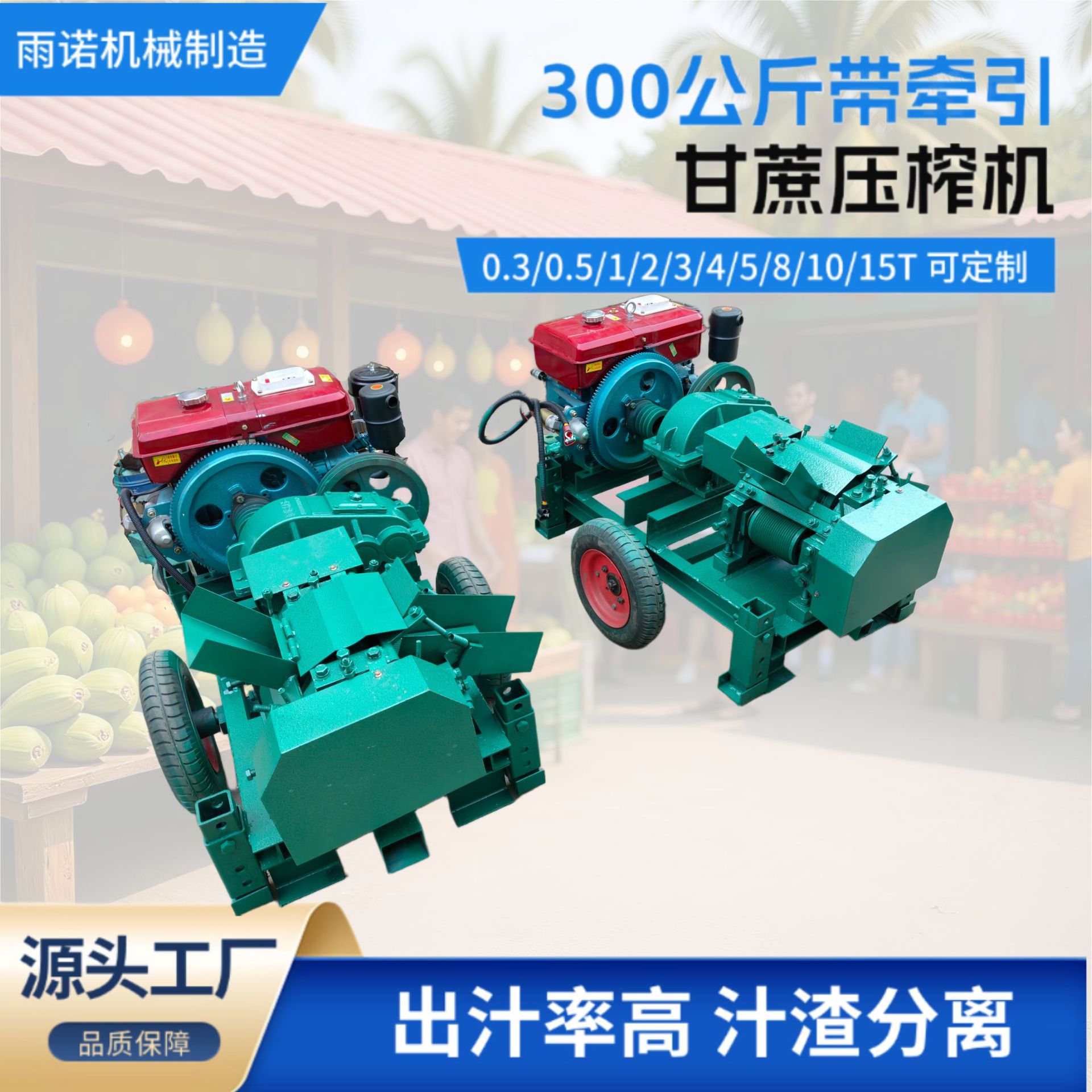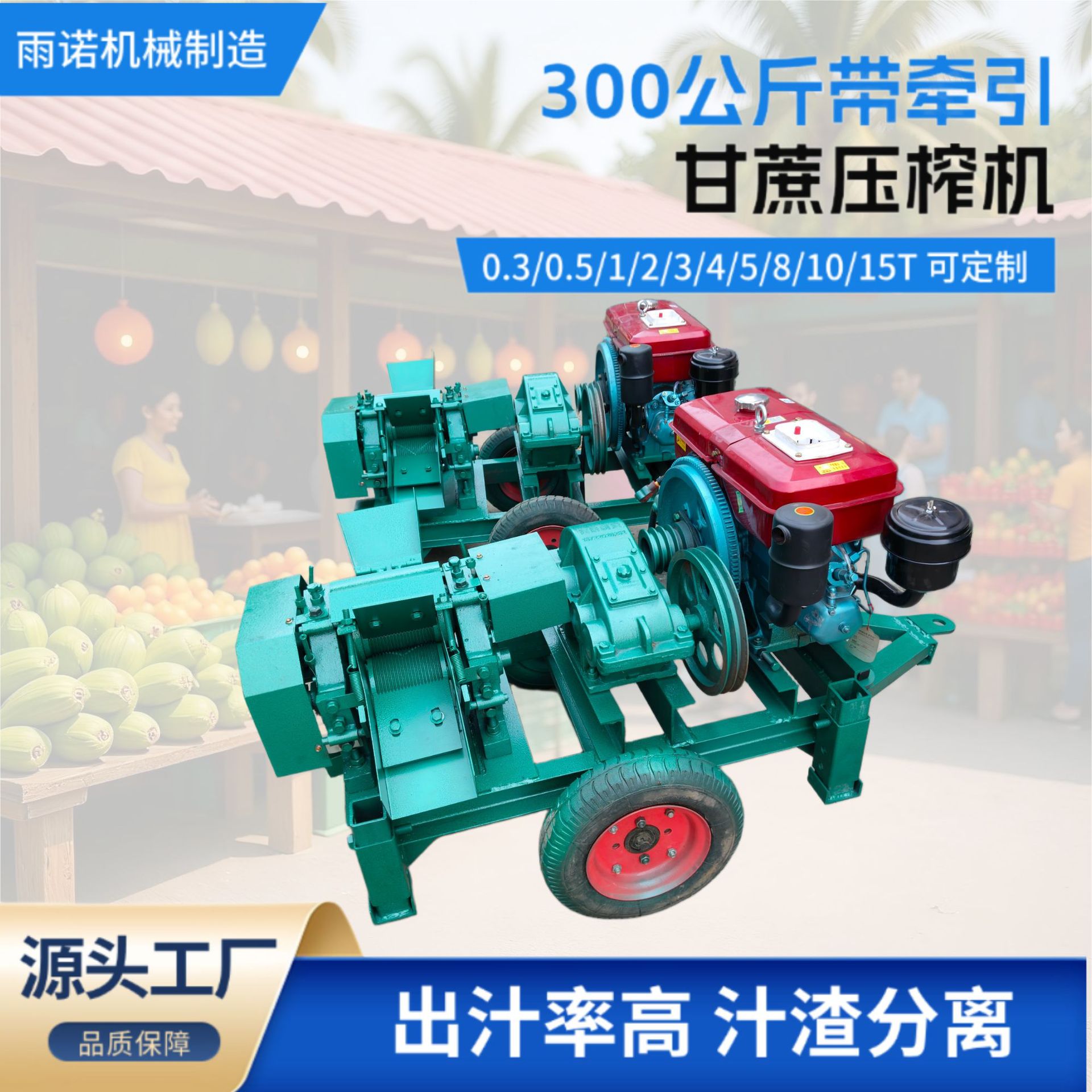 糖厂用甘蔗榨汁机现货厂家0.3T商用柴油机带牵引加厚钢材压榨机