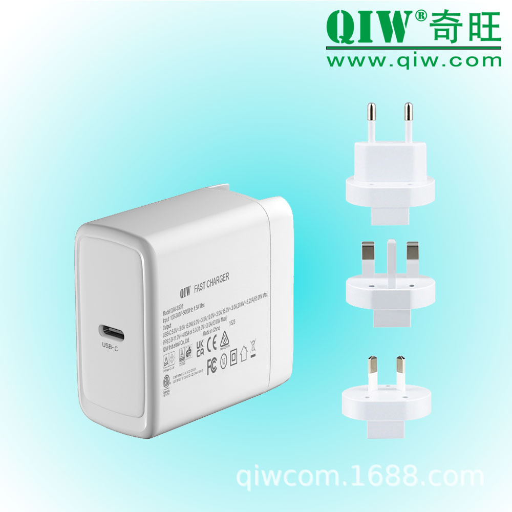 QIW 美规/欧规/英规/澳规/中规/韩规 65W 可换插头PD充电器氮化镓