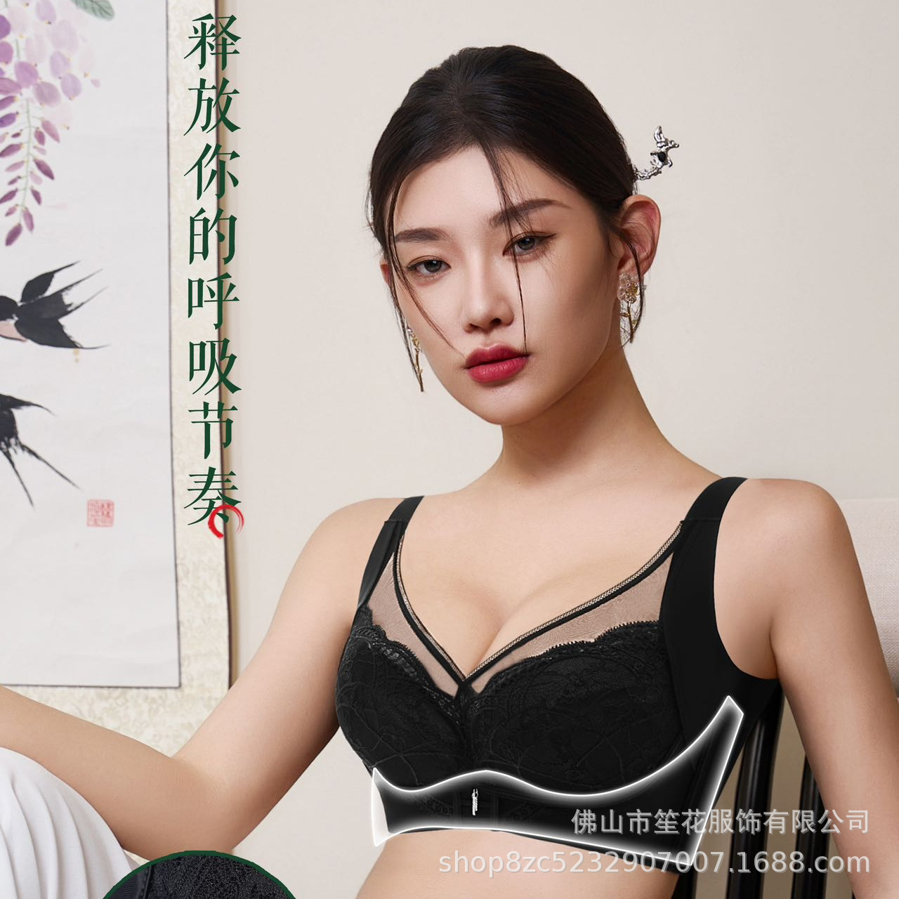 舒适调整型直立棉大罩杯聚拢软钢圈收副乳透气性感蕾丝新款女士内