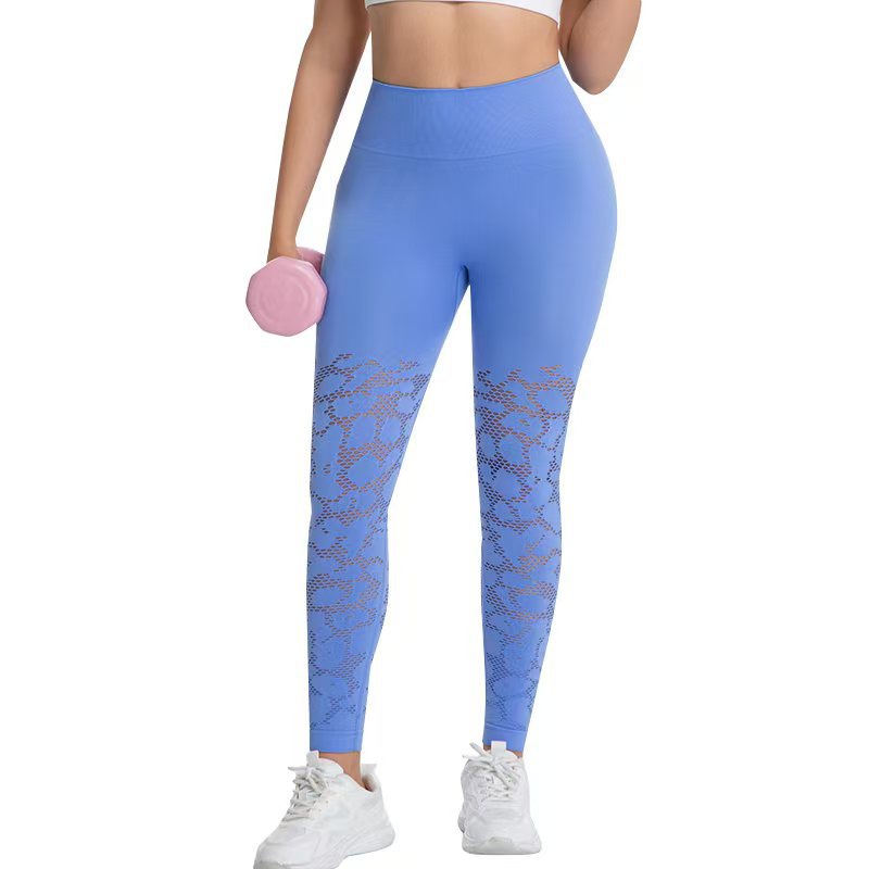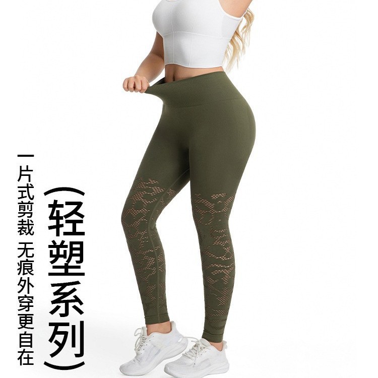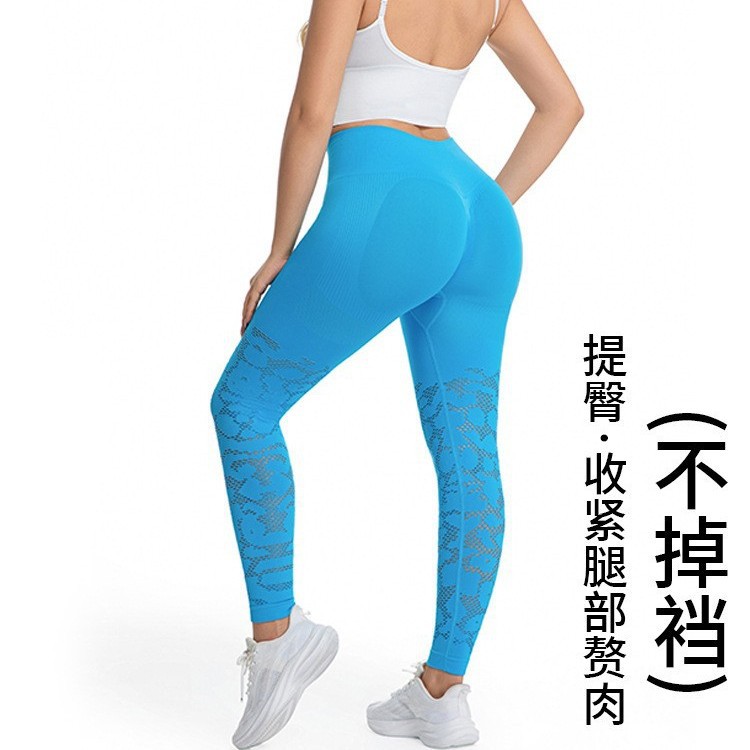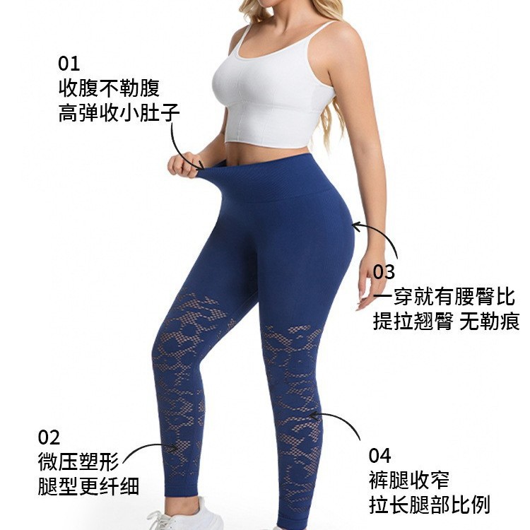 跨境镂空修身紧身提臀高腰收腹健身长裤户外运动跑步速干瑜伽裤女