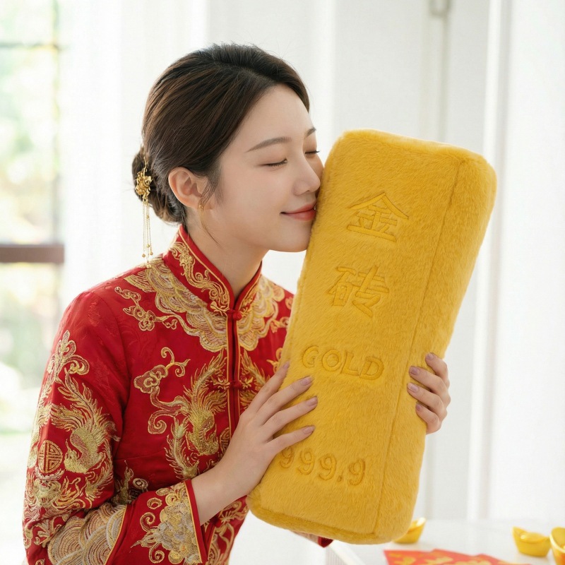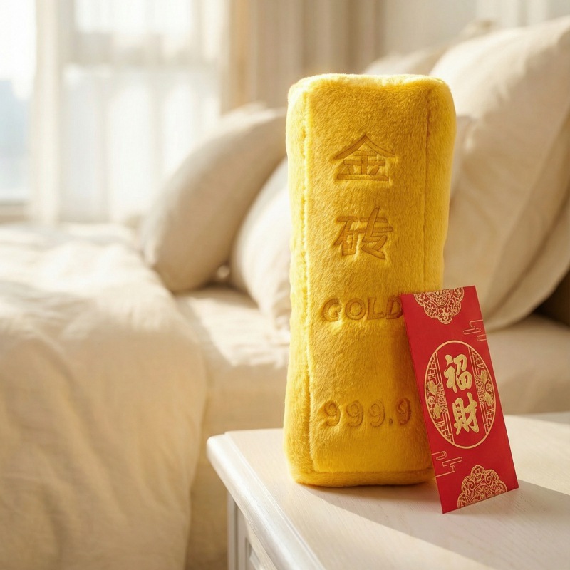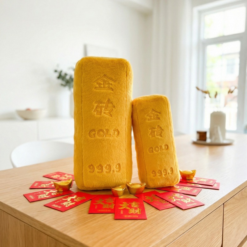 跨境仿真金转抱枕毛绒玩具黄金9999长条玩偶公仔抓机礼品兑换道具
